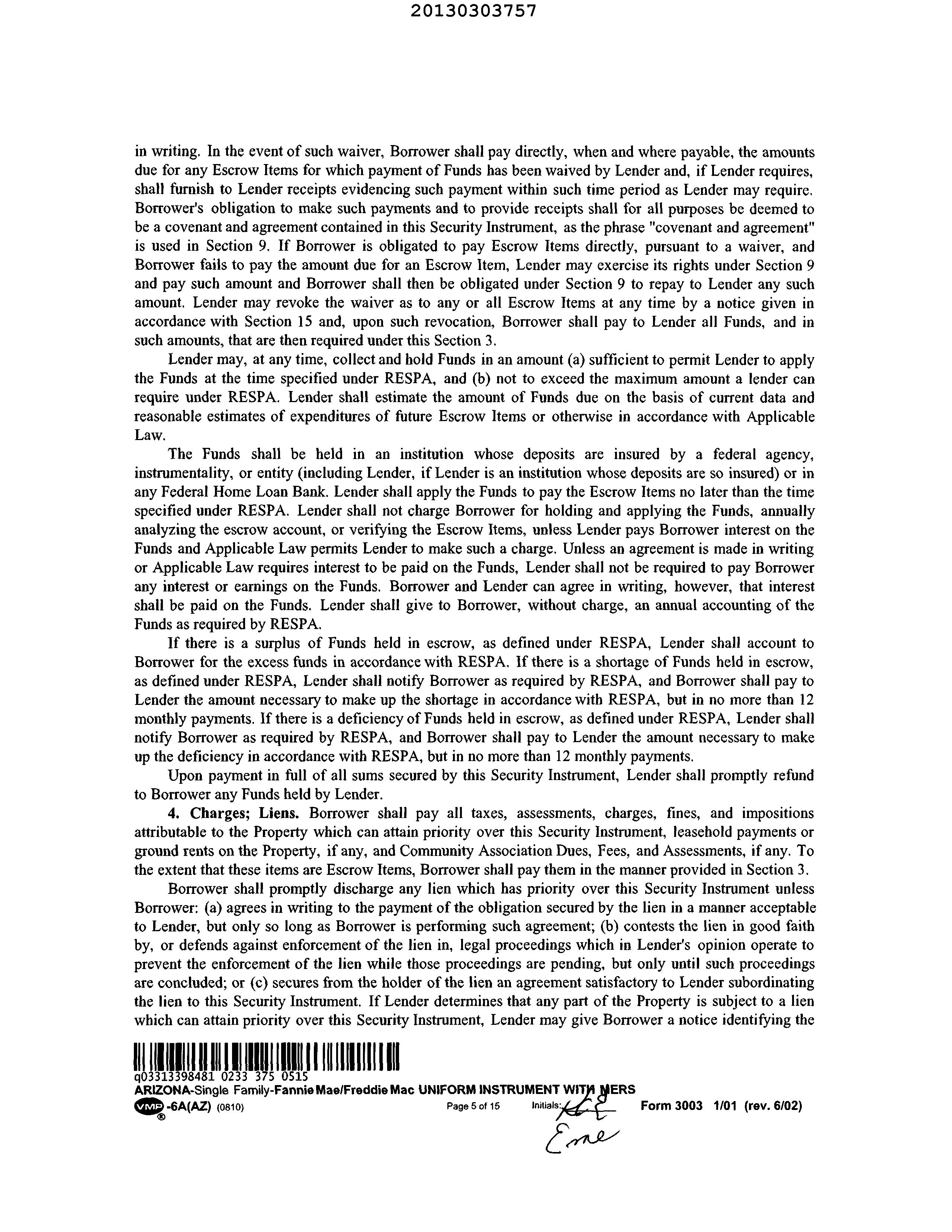 MARICOPA, AZ Document:DOT 2013.303757 Page:5 of 22 Printed on:9/19/2023 3:06 PM Branch :FC0 User :JSTI