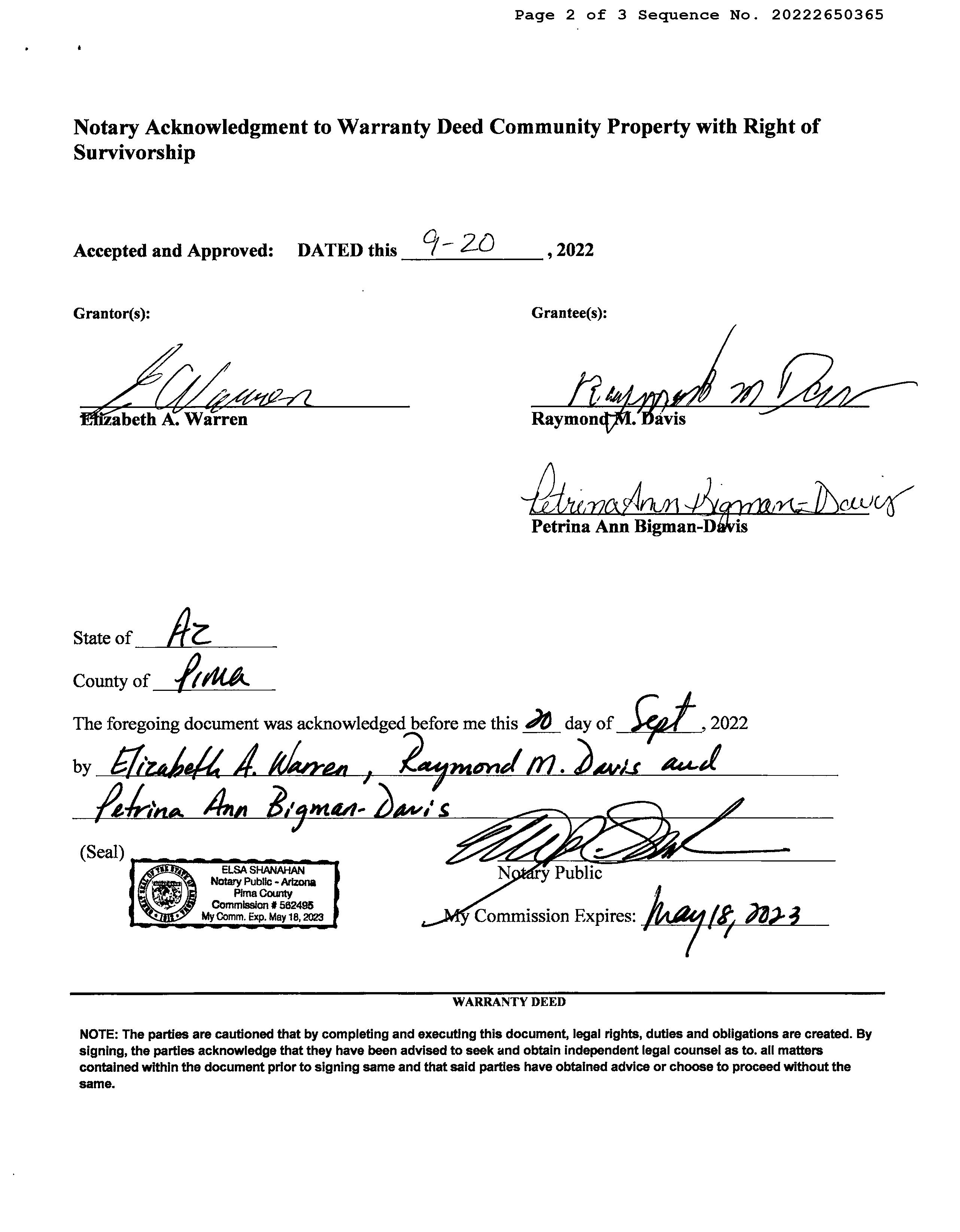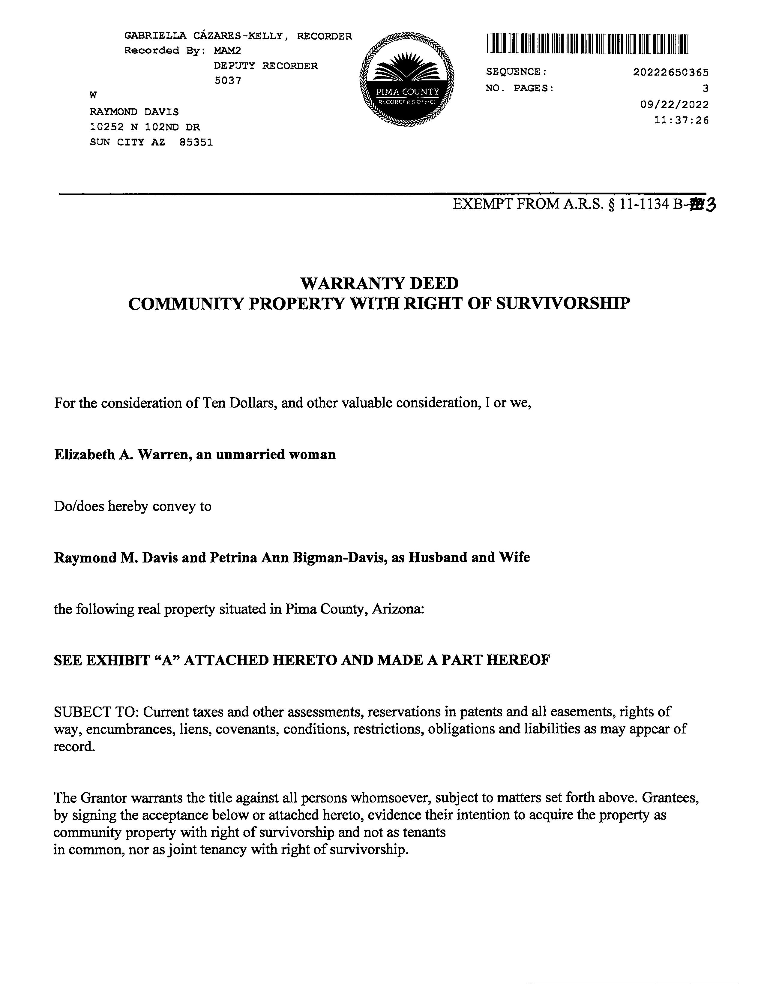 Deed Type : Warranty Deed
