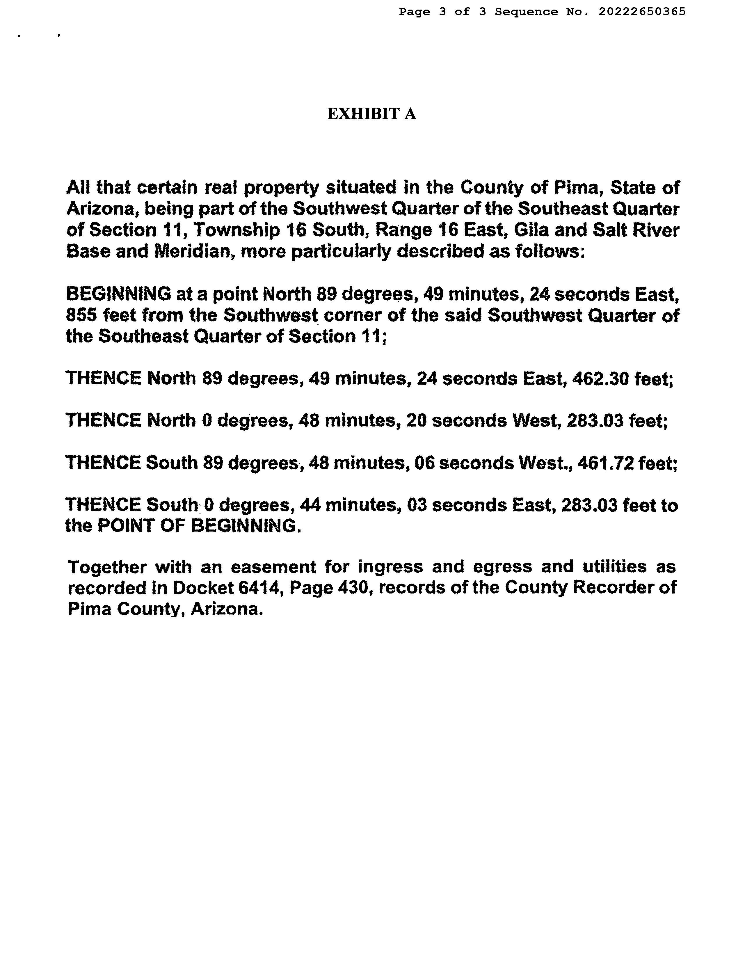 Legal Description : S283.03' E461.72' Sw4 Se4 3 Ac Sec 11-16-16