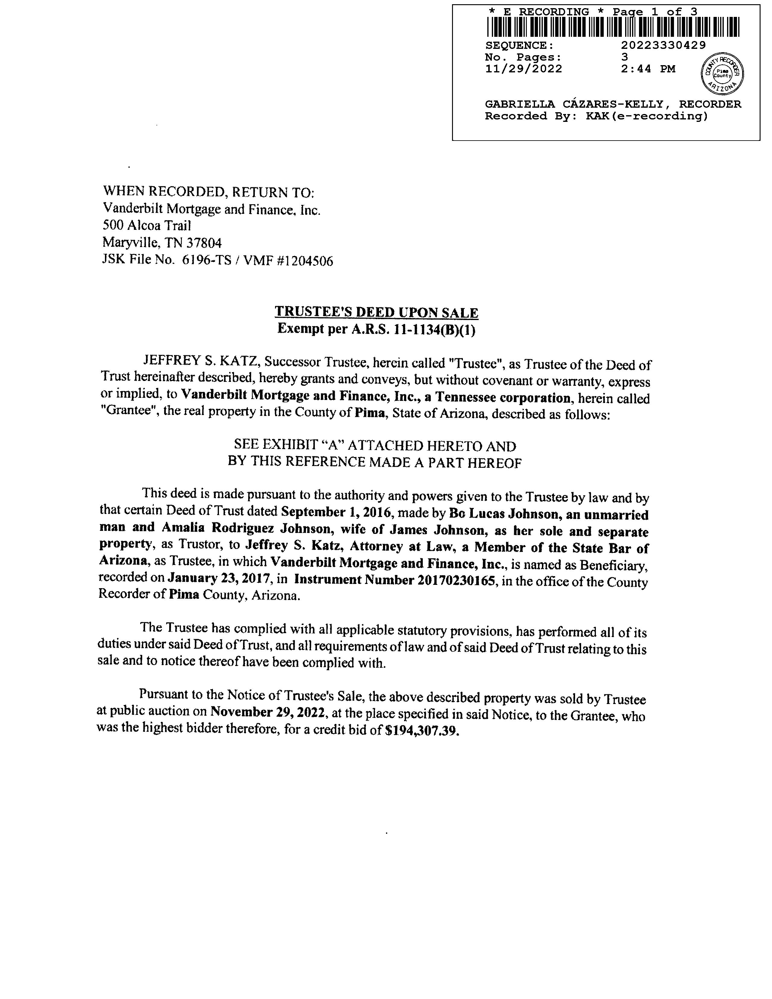 Recording Date : 08/06/2022 Auction City : TUCSON