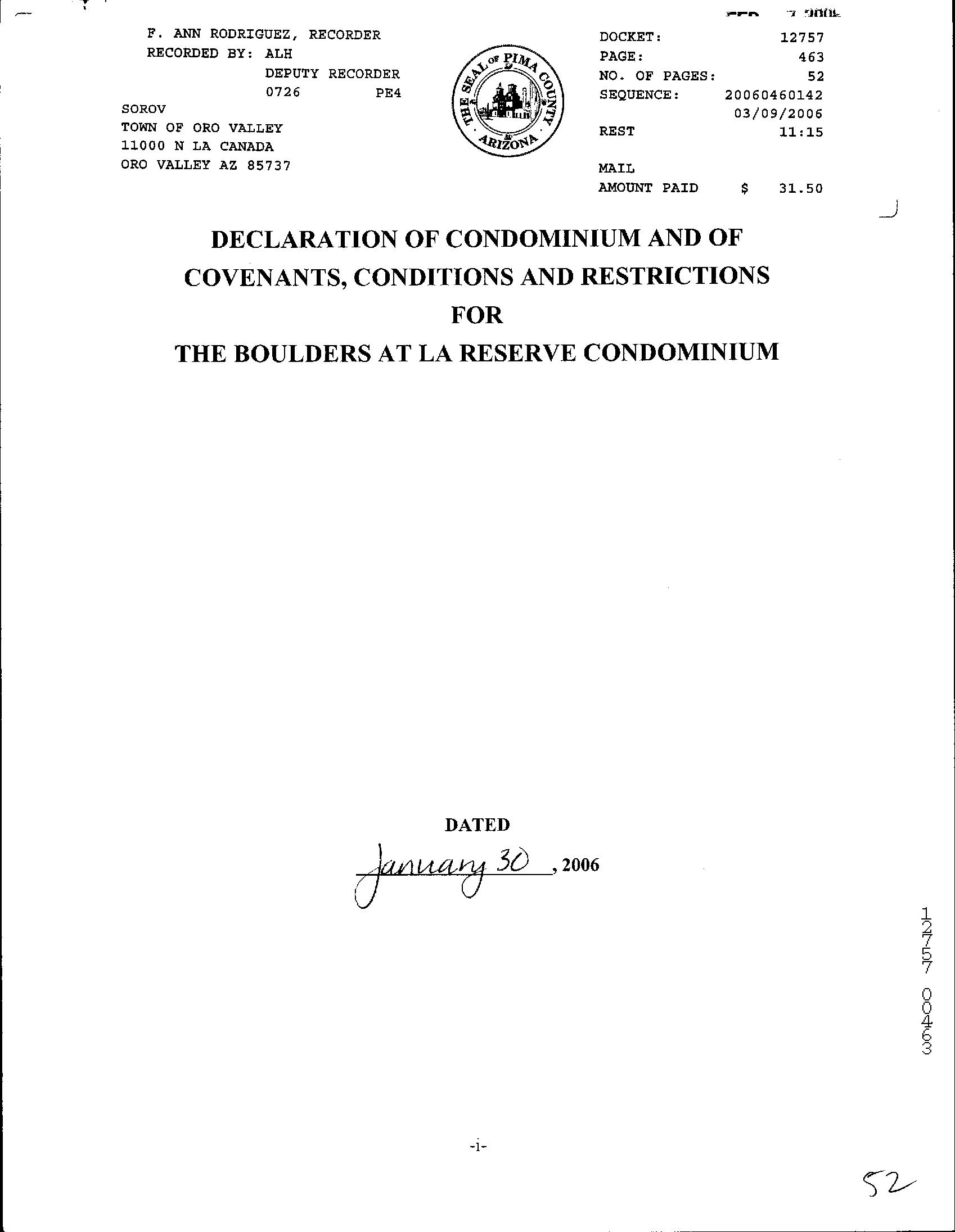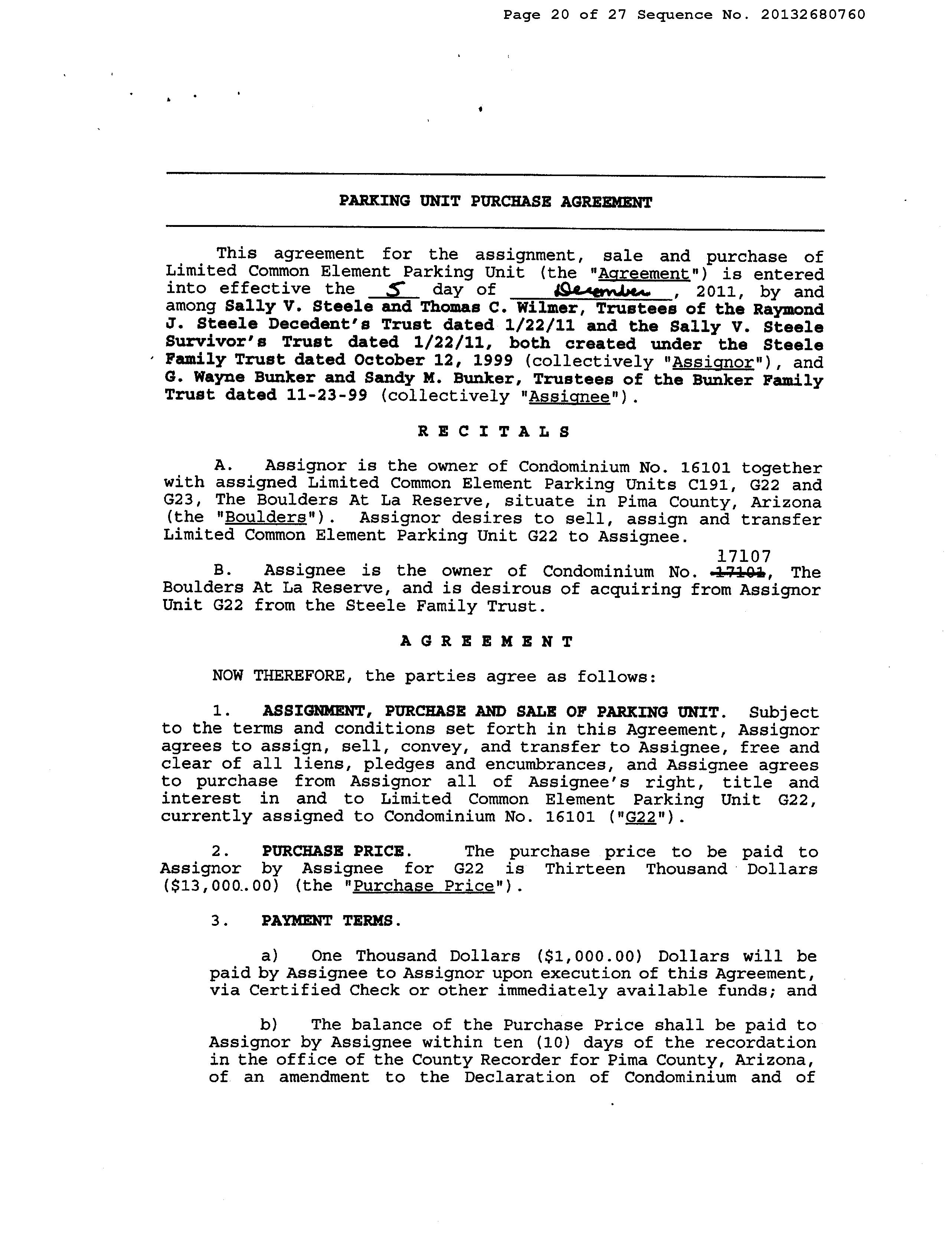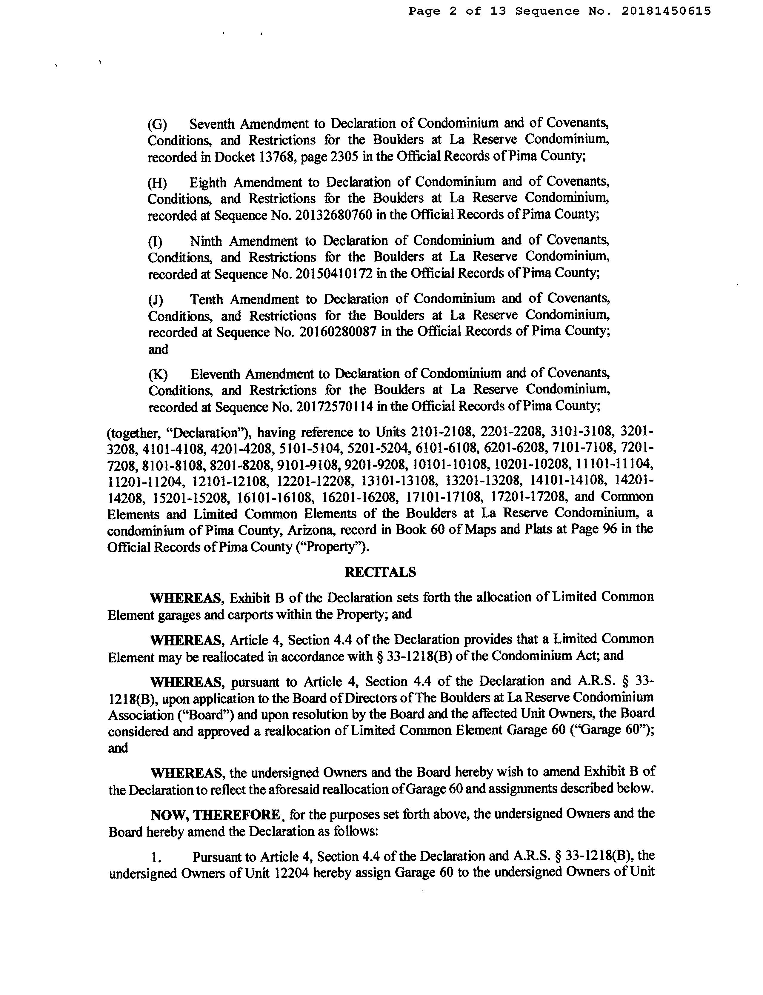 Legal Description : Boulders At La Reserve Condominiums Unit 15203 See Restriction For Assigned Carport/garage Detail