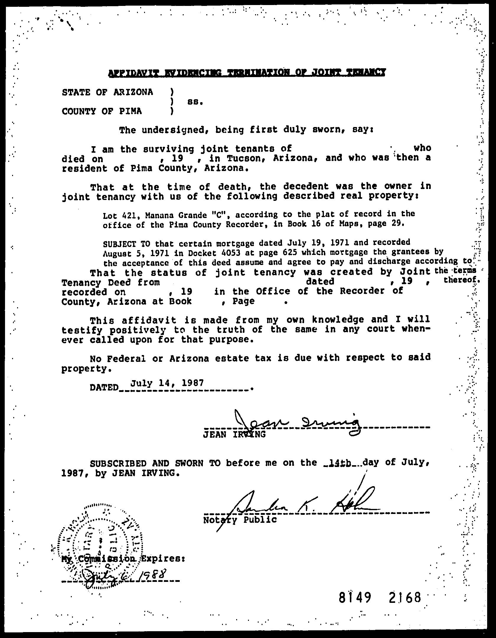 #20 7441 E Princeton Dr Tucson Az 85710 Owner Name: Grossman Larissa /Grossman Brett