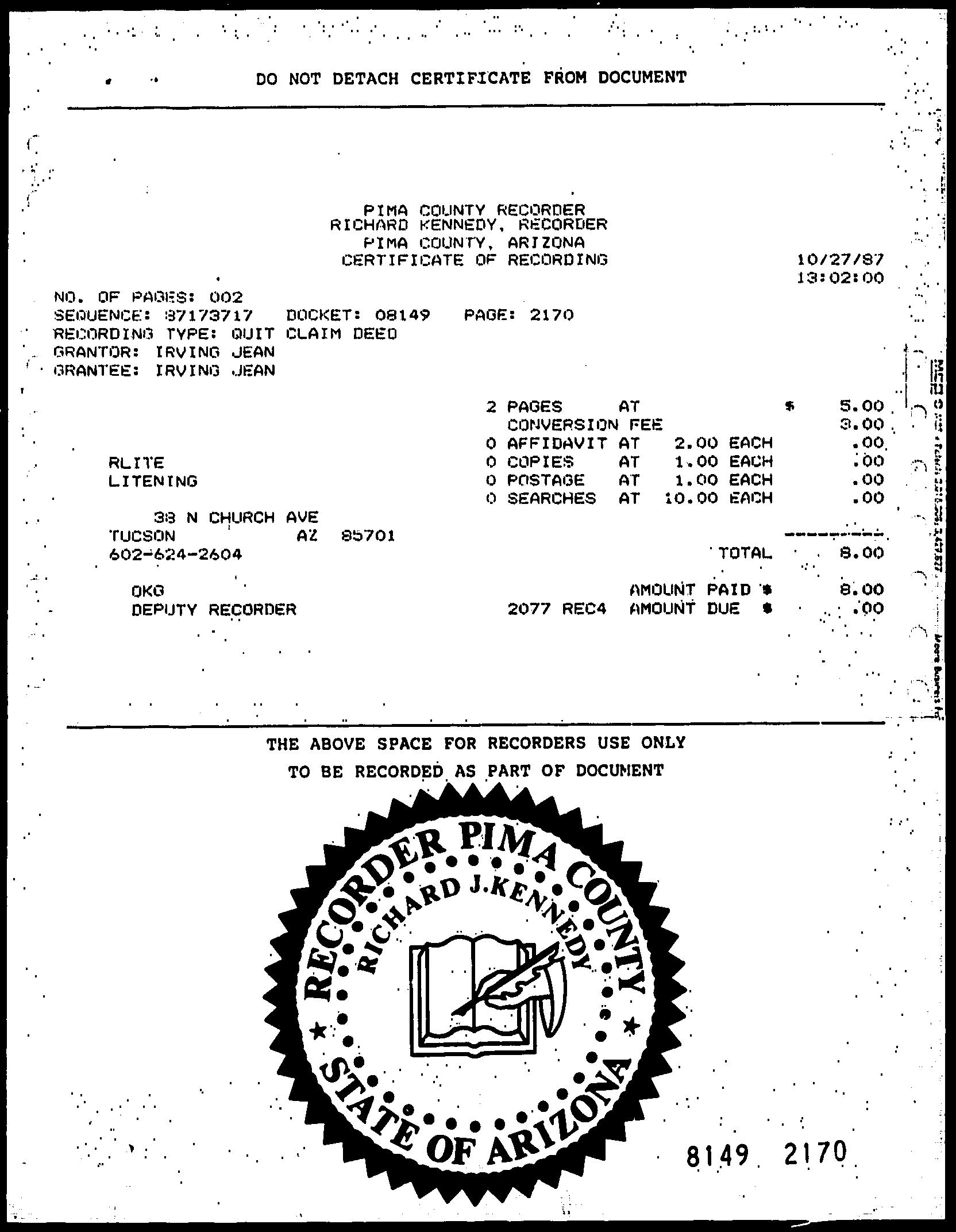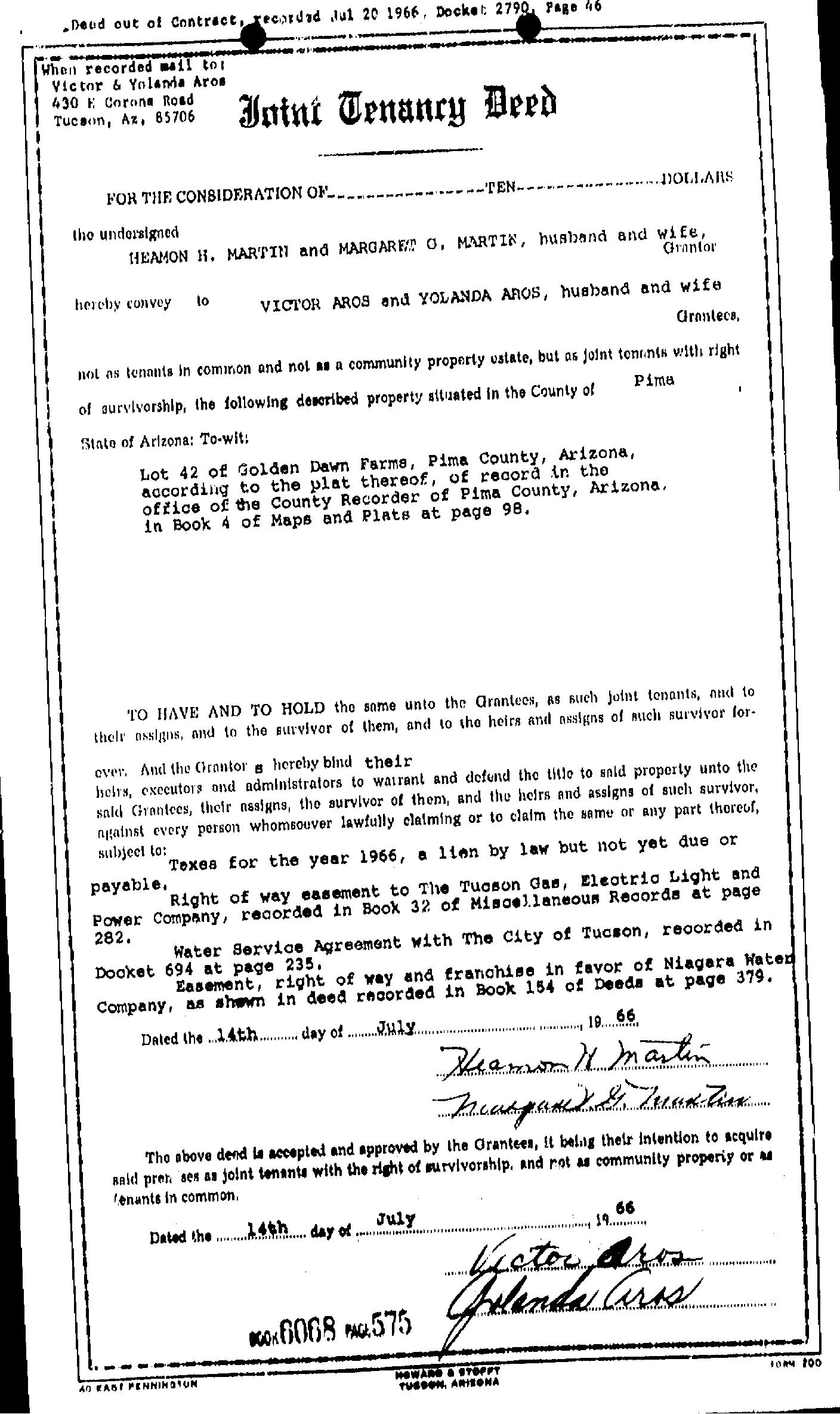 Mailing Address : 1518 S Prudence Rd, Tucson AZ 85710-5538 C054