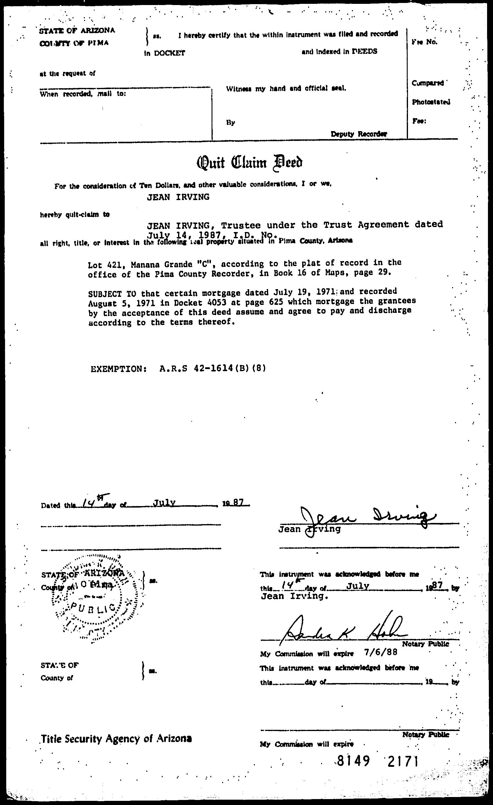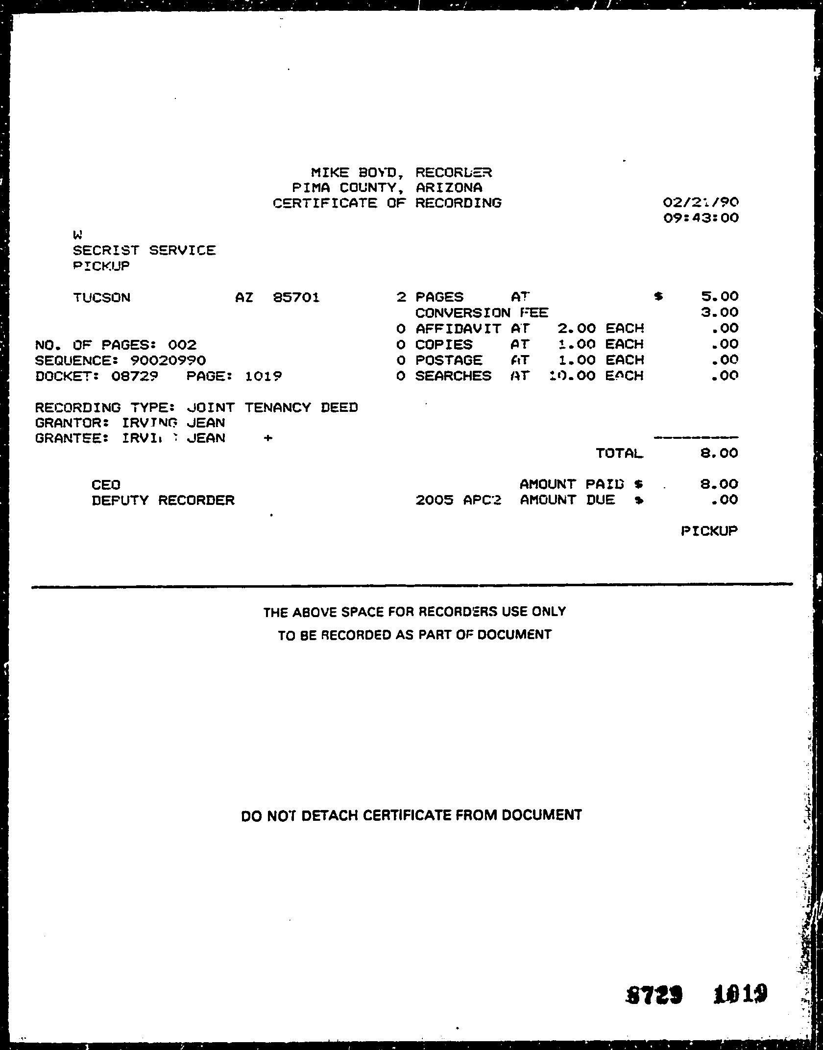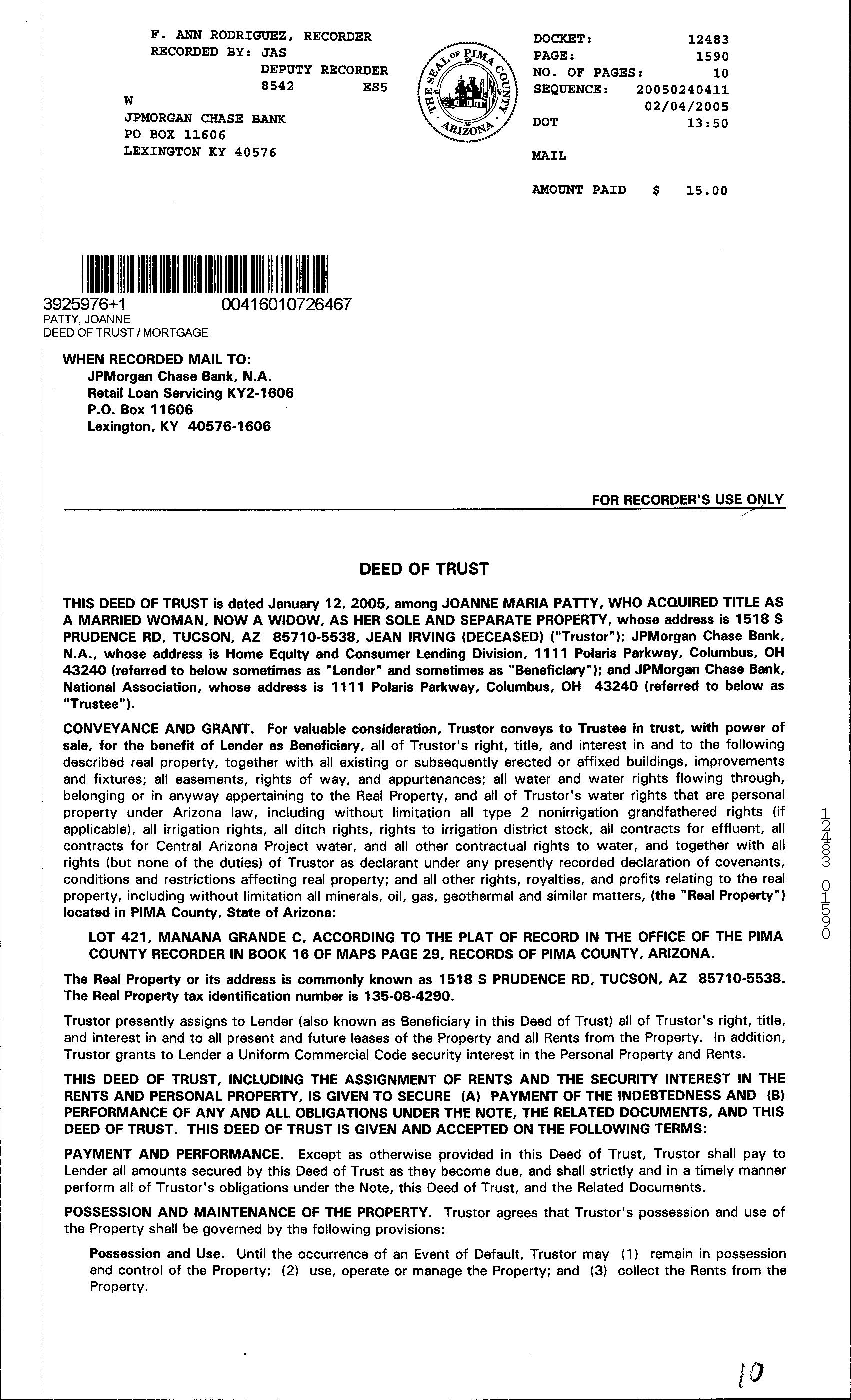 7342 E Calle Cuernavaca Tucson Az 85710 Owner Name: Rohrbaugh Jessica Lee /Rohrbaugh Tyler R