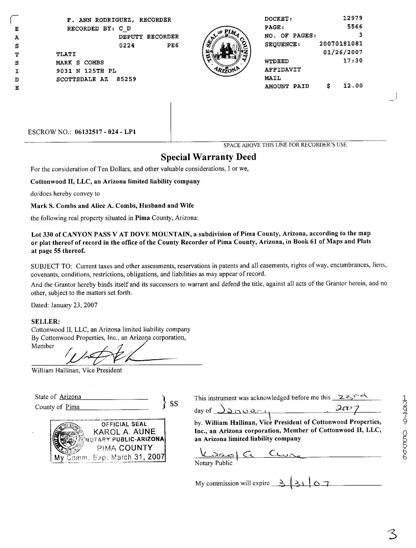 Recording/Sale Date : 06/08/2007 / 05/17/2007