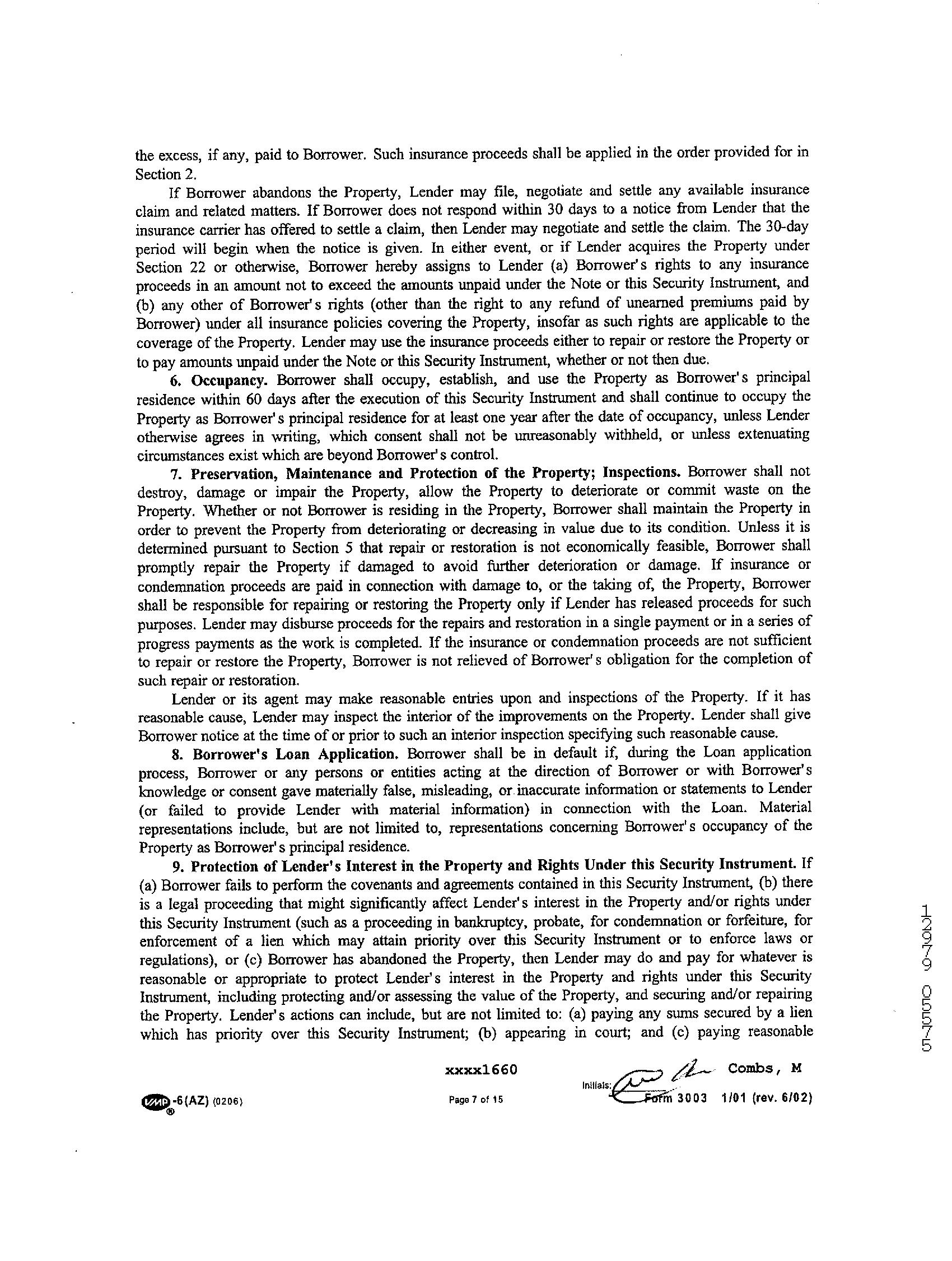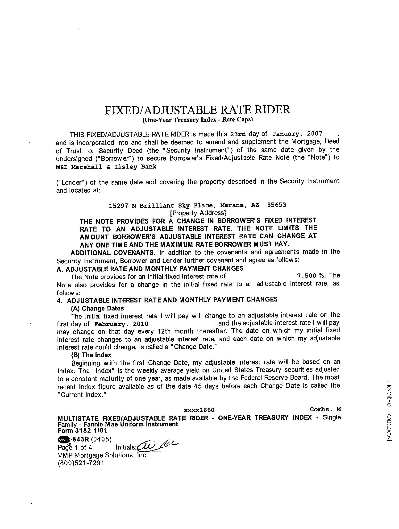 1st Mtg Int. Rate/Type : 7.5% / Adjustable Int Rate Loan