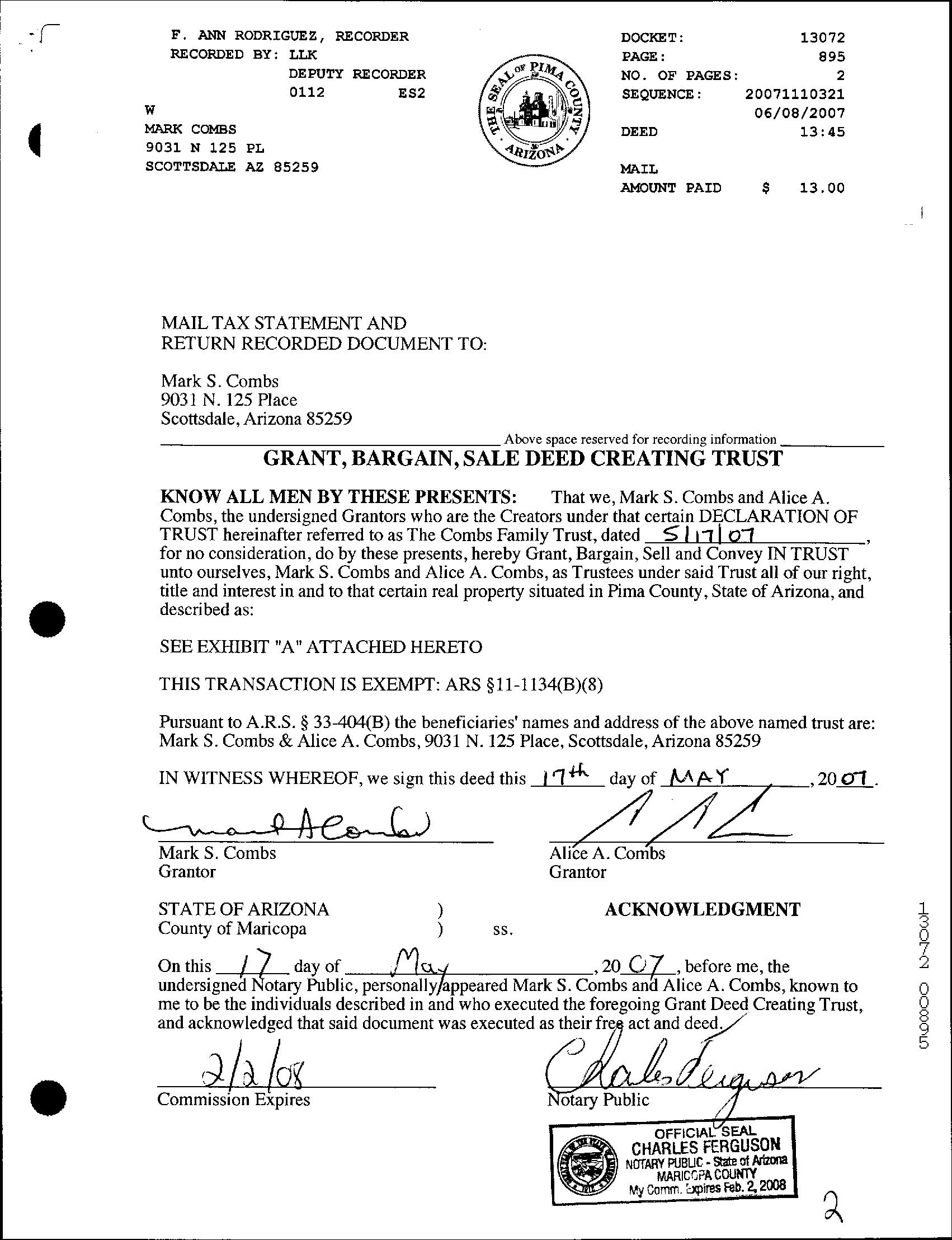 OWNER: COMBSÂ FAMILYÂ TR