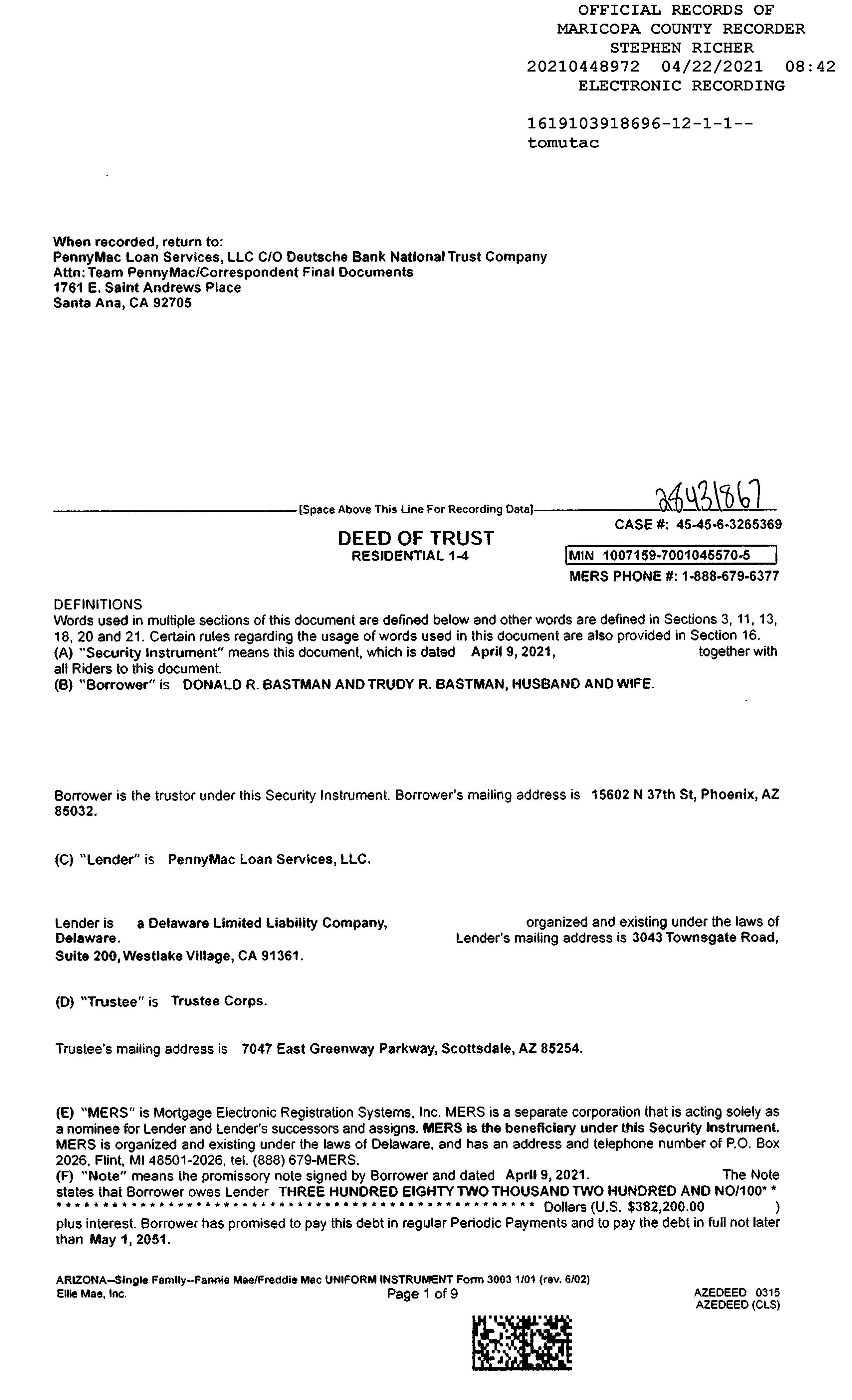 Owner Name: Bastman Donald R /Bastman Trudy R