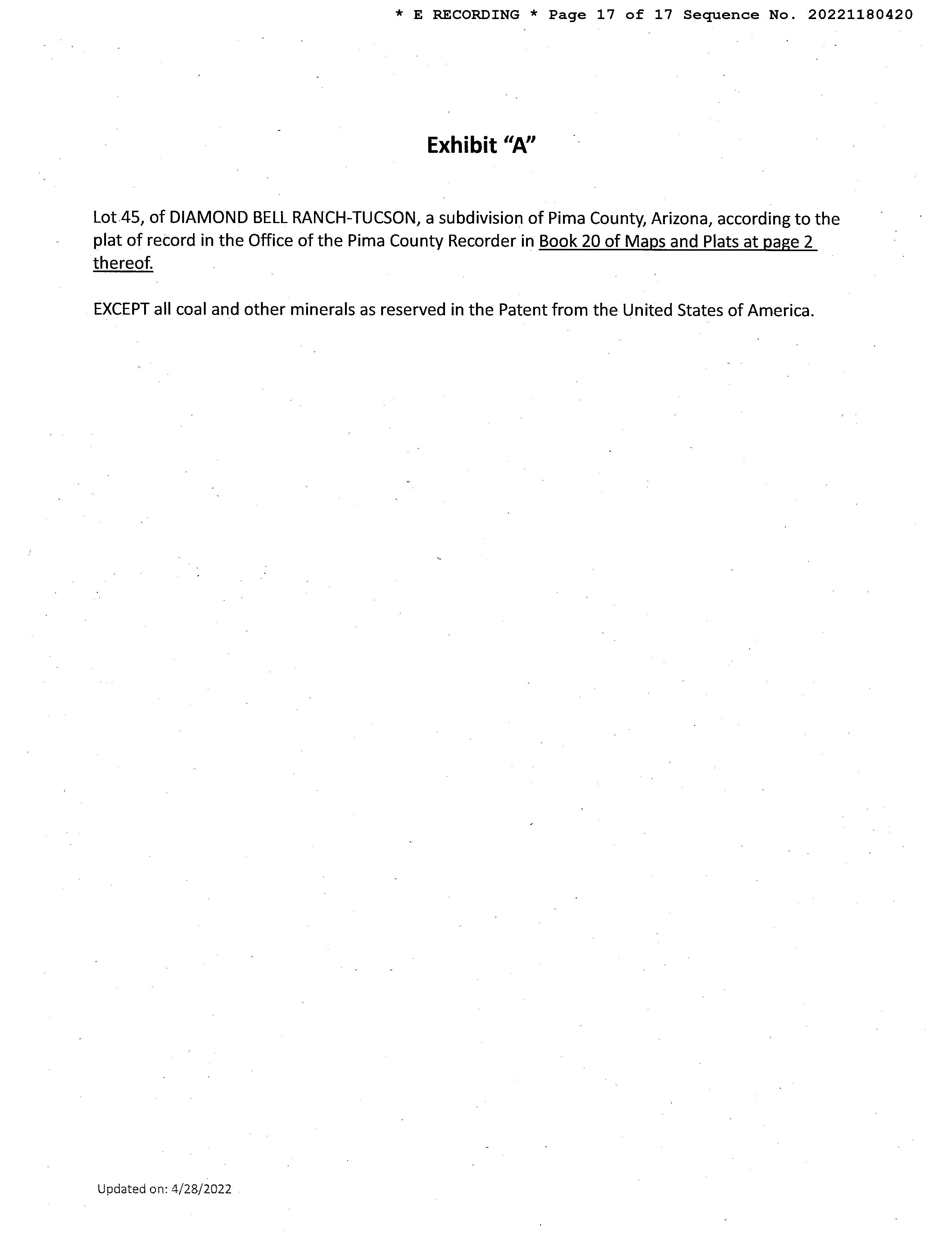 O Location Information Legal Description : Diamond Bell Ranch/tucson Lot 45 County : Pima, Az APN : 301-59-0450