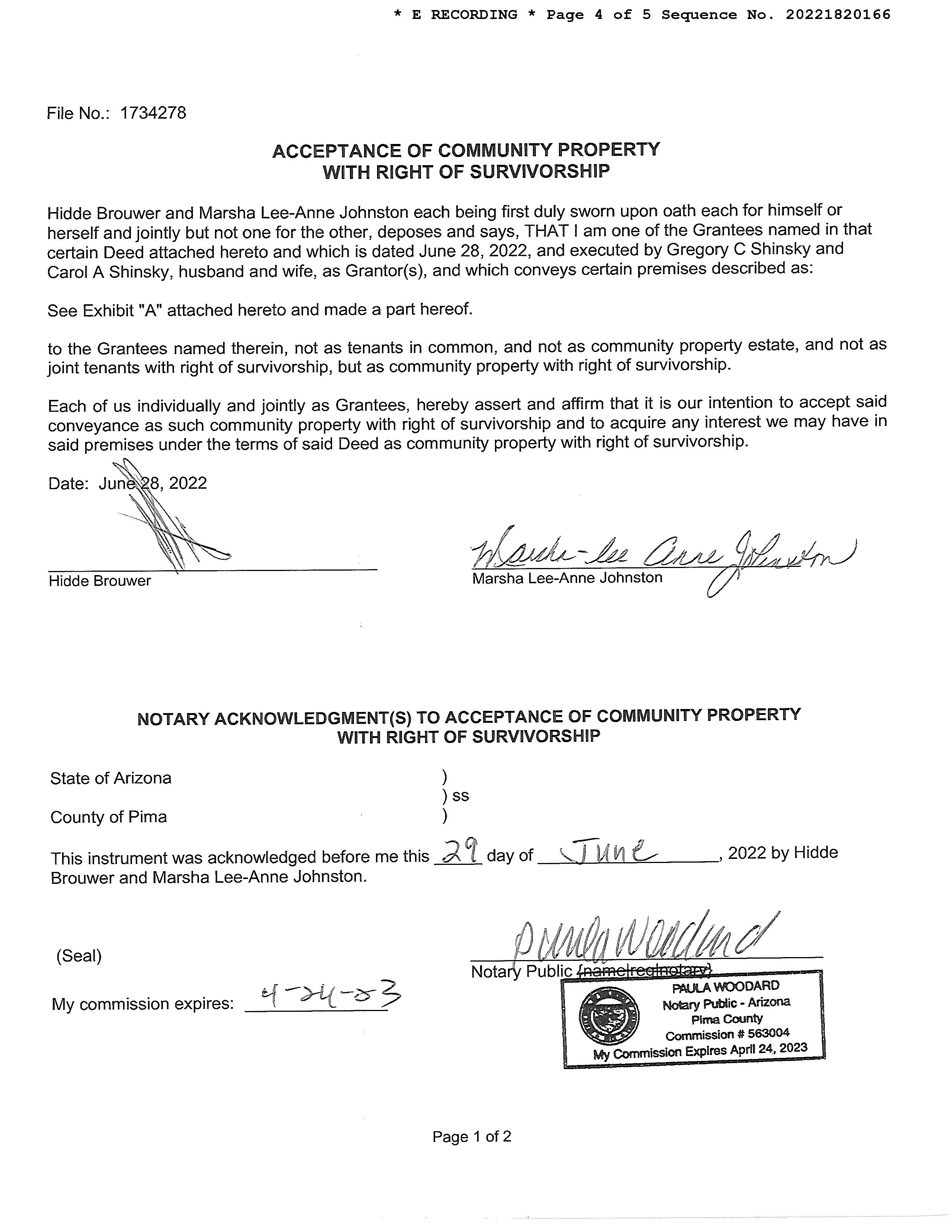 Owner Name: Brouwer Hidde /Johnston Marsha Lee-anne