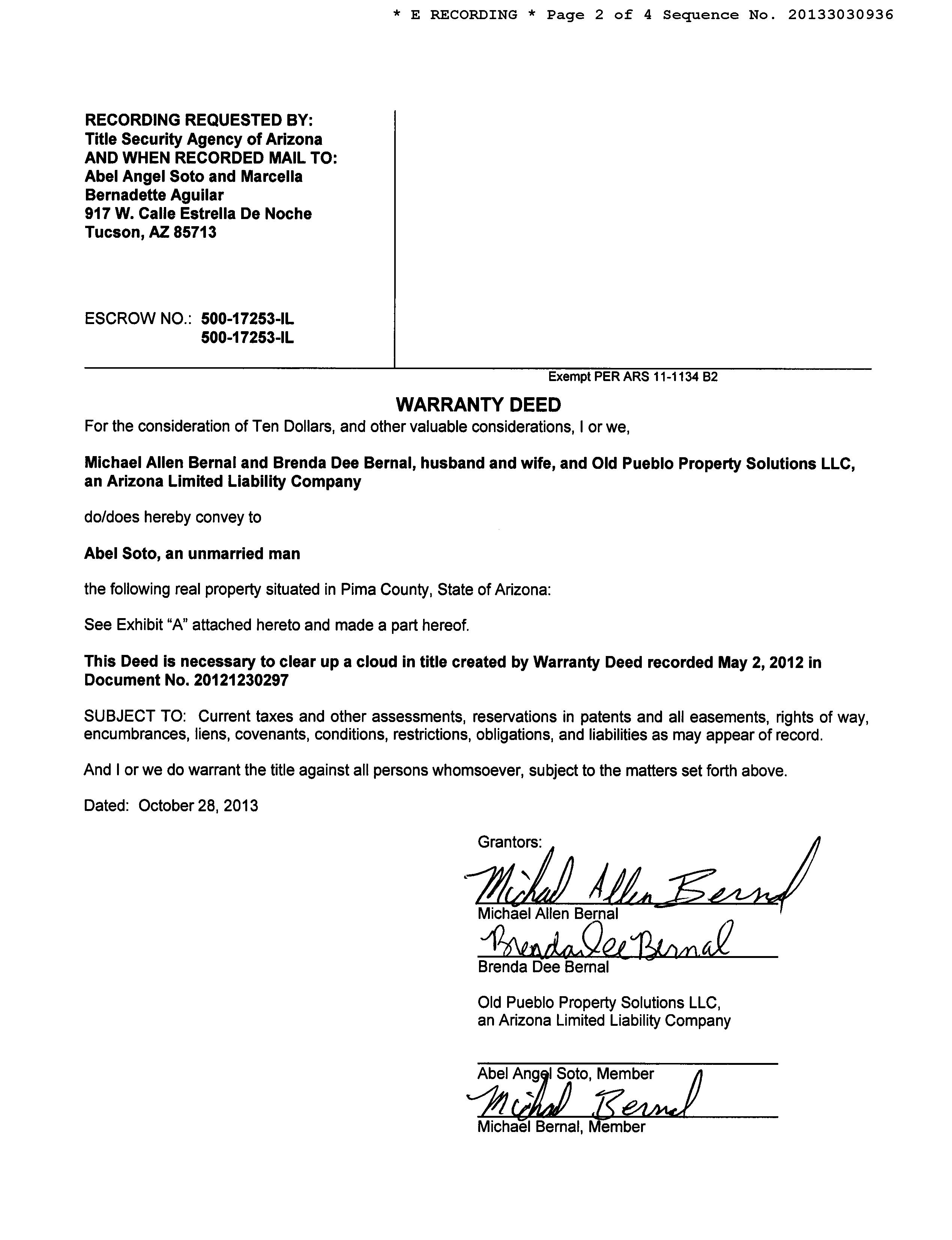 Owner Name: Soto Abel / APN / Alternate APN: 115-17-215B / Deed Type: Warranty Deed