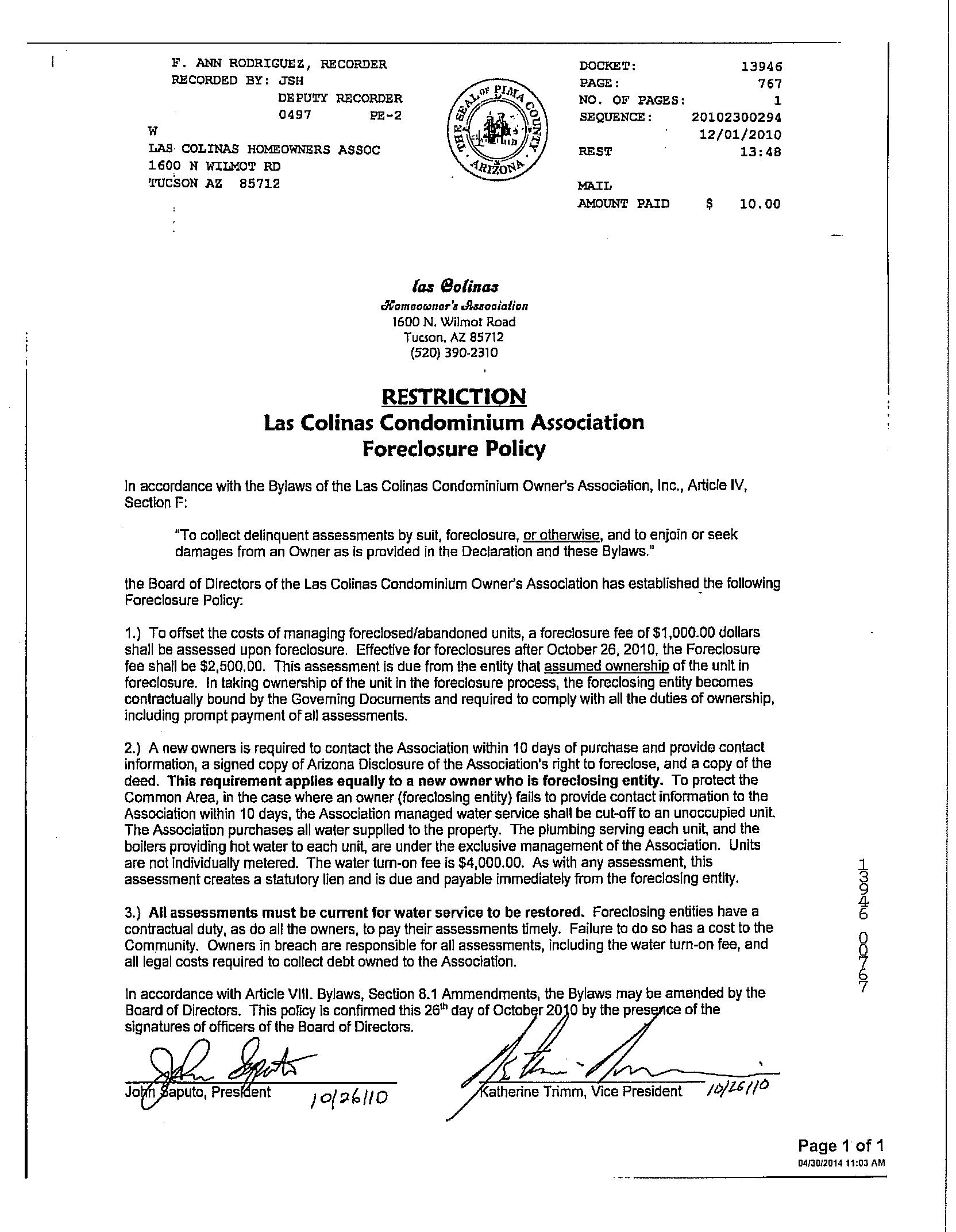 Mailing Address : 1600 N Wilmot Rd Unit 187, Tucson AZ 85712-4427 C018