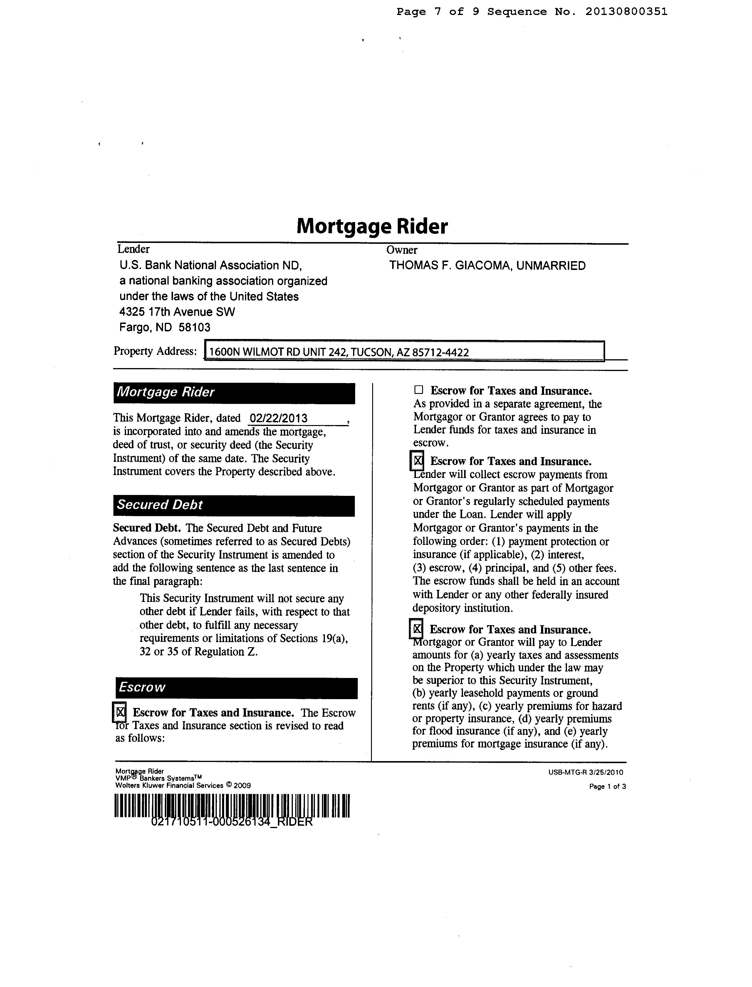 1st Mtg Int. Rate/Type : / Adjustable Int Rate Loan