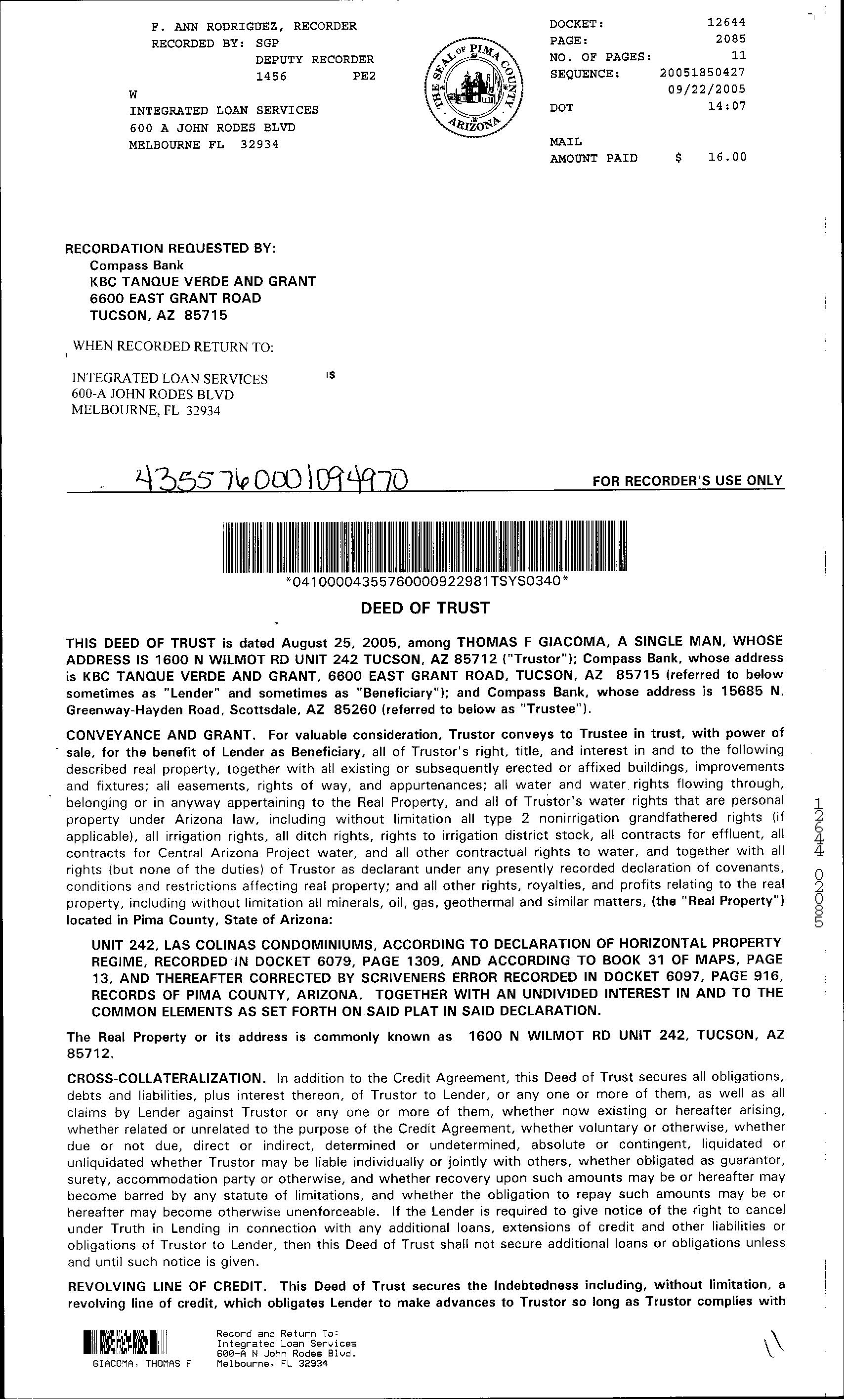 Mailing Address : 1600 N Wilmot Rd #242, Tucson AZ 85712-4422 C018