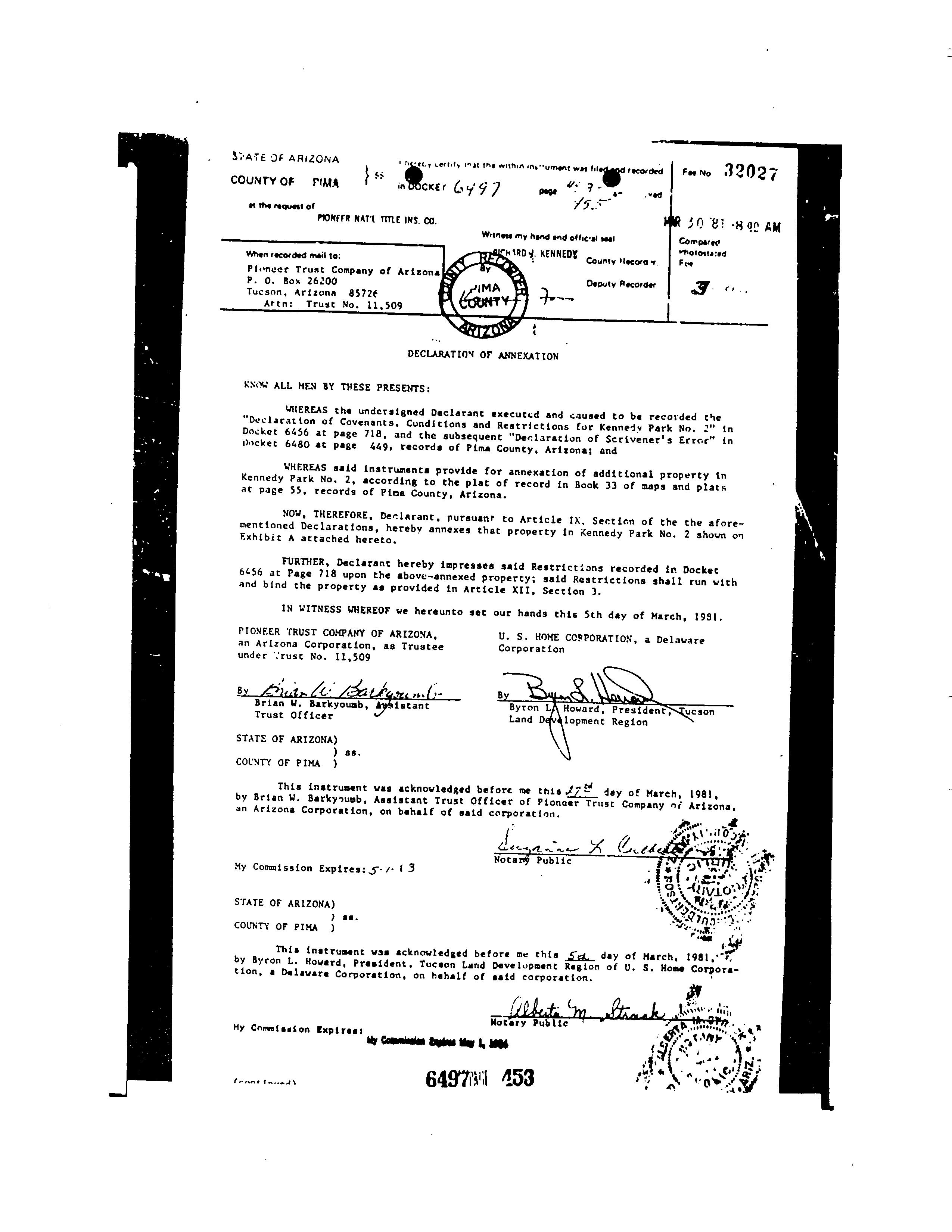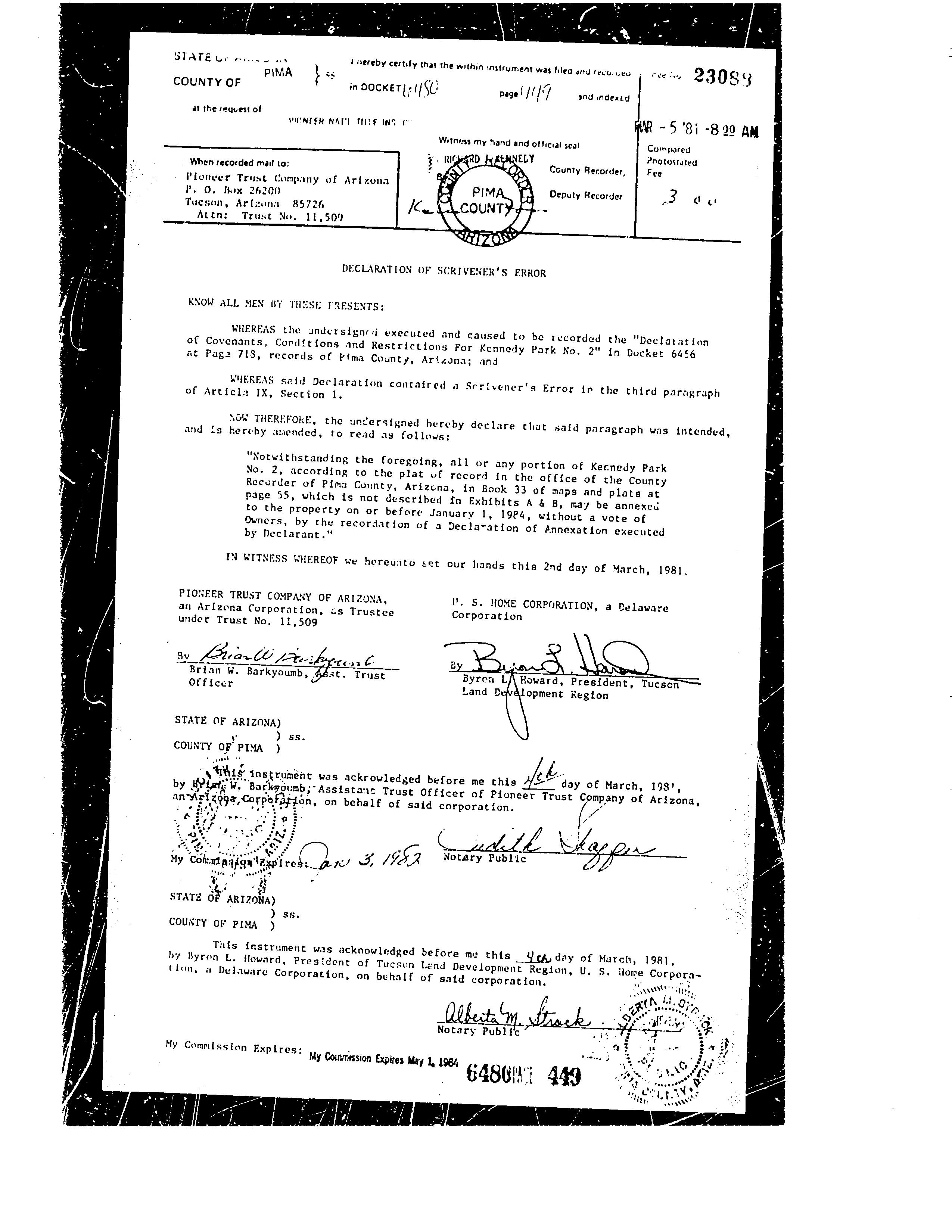 Mailing Address : 1610 W Calle Del Rey, Tucson AZ 85713-5657 C005