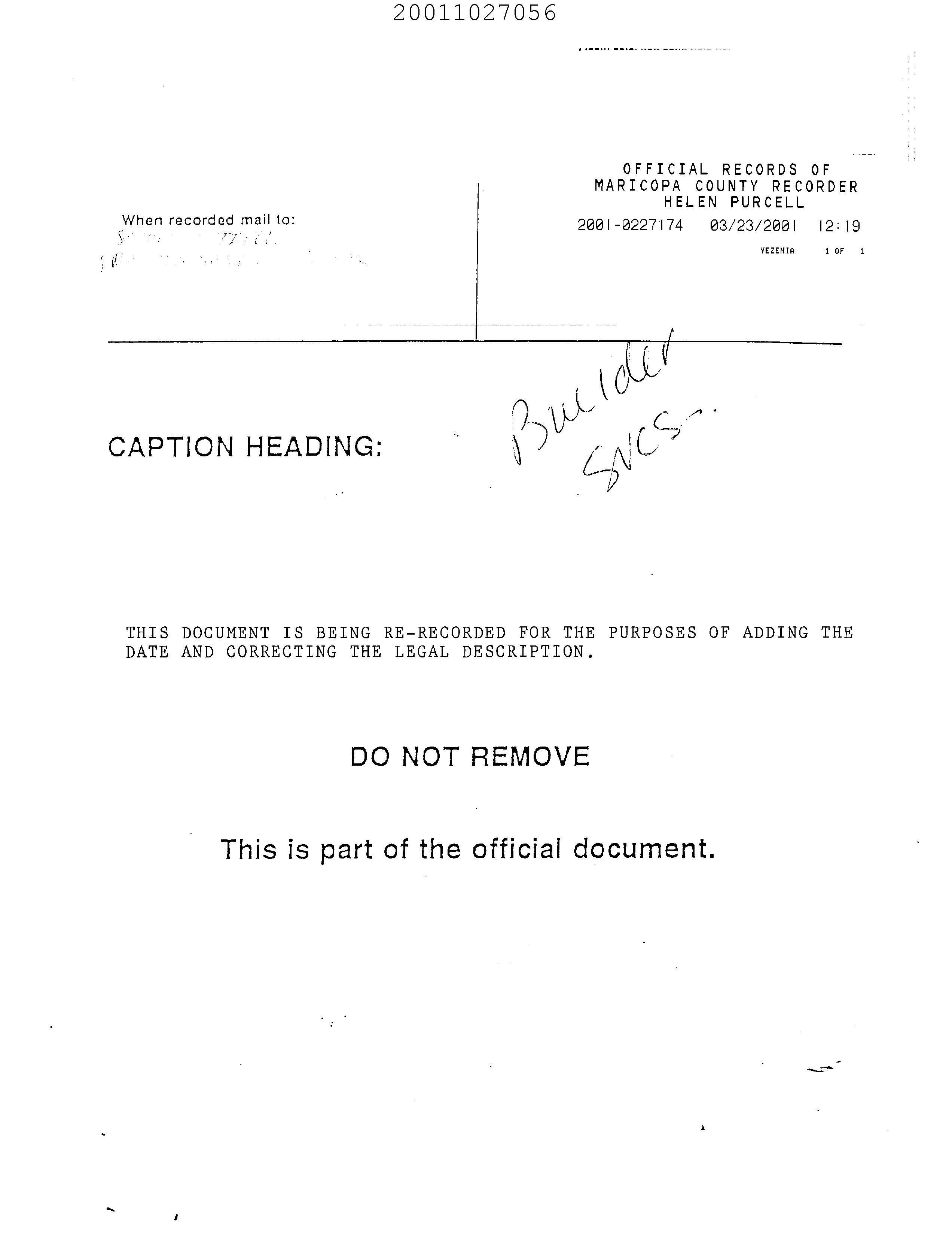 MARICOPA, AZ Document:RES 2001.1027056 Page:1 of 23 Printed on:6/20/2023 4:05 PM Branch :FC0 User :JSTI