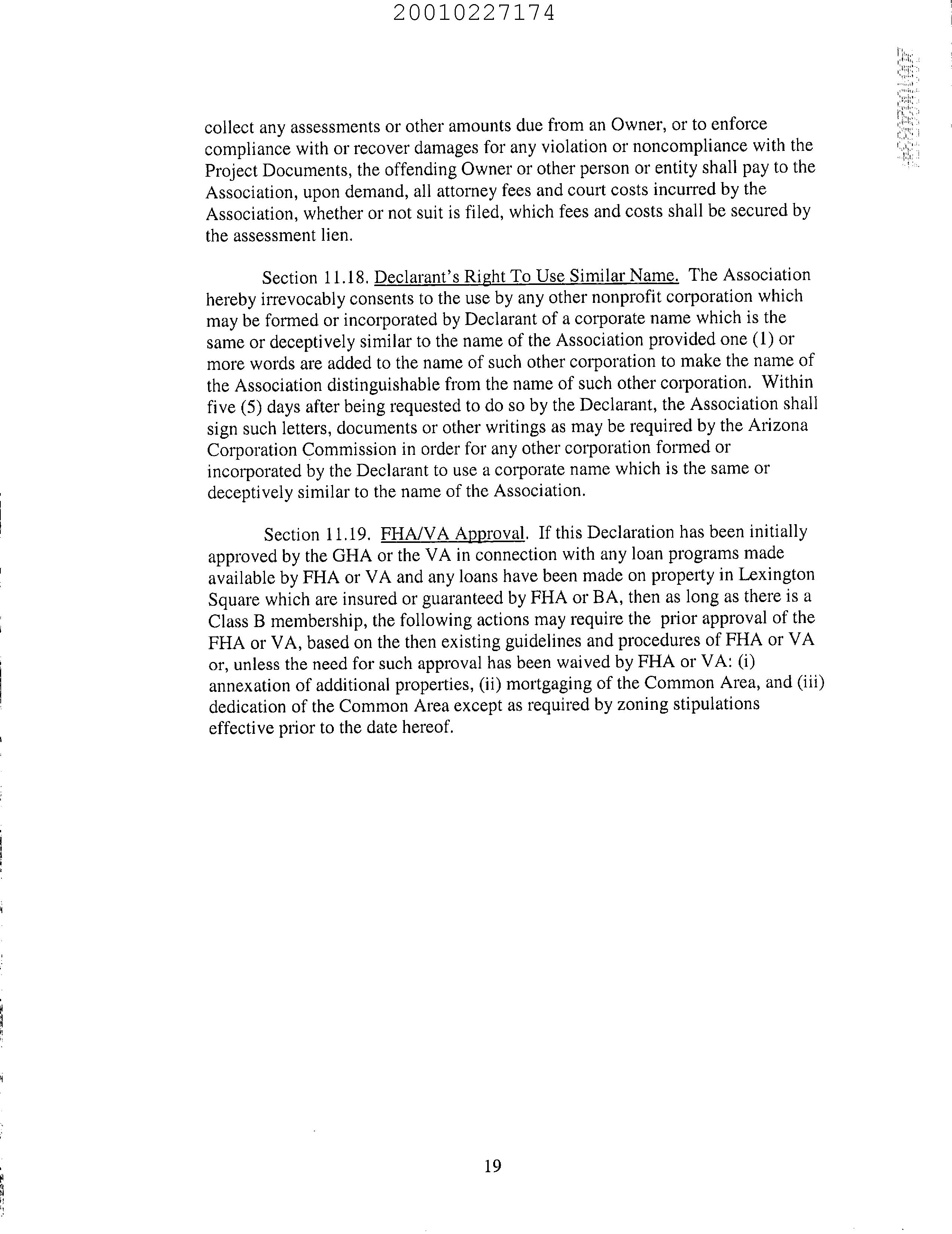 MARICOPA, AZ Document:RES 2001.227174 Page:19 of 22 Printed on:6/20/2023 4:05 PM Branch :FC0 User :JSTI