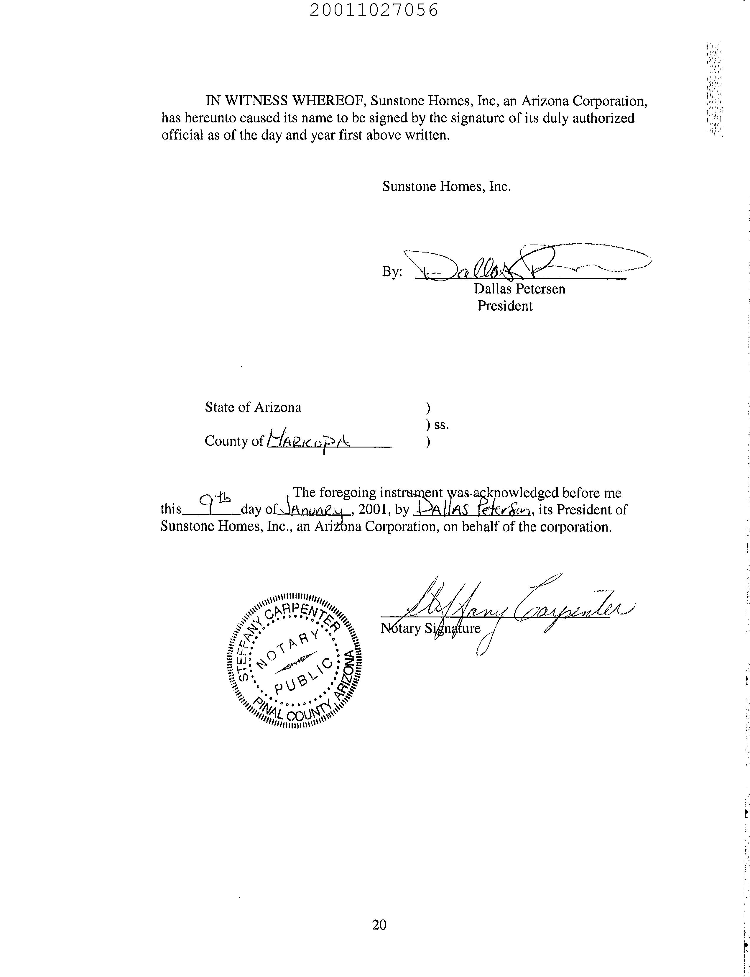 MARICOPA, AZ Document:RES 2001.1027056 Page:20 of 23 Printed on:6/20/2023 4:05 PM Branch :FC0 User :JSTI