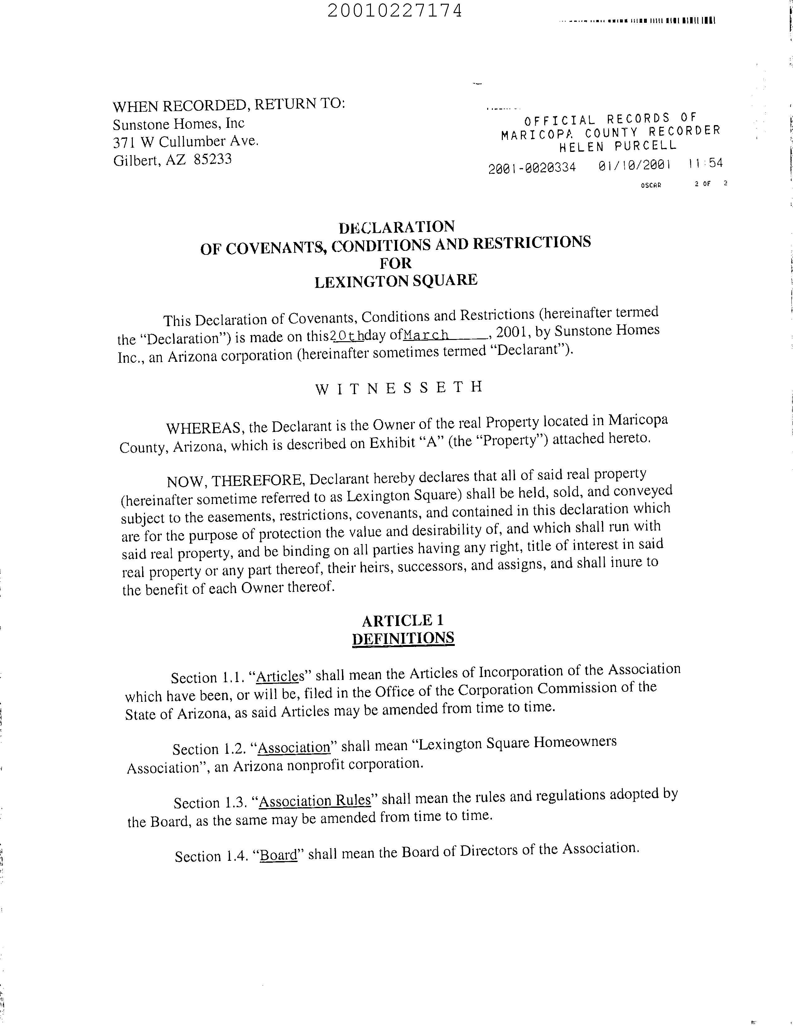 MARICOPA, AZ Document:RES 2001.227174 Page:2 of 22 Printed on:6/20/2023 4:05 PM Branch :FC0 User :JSTI