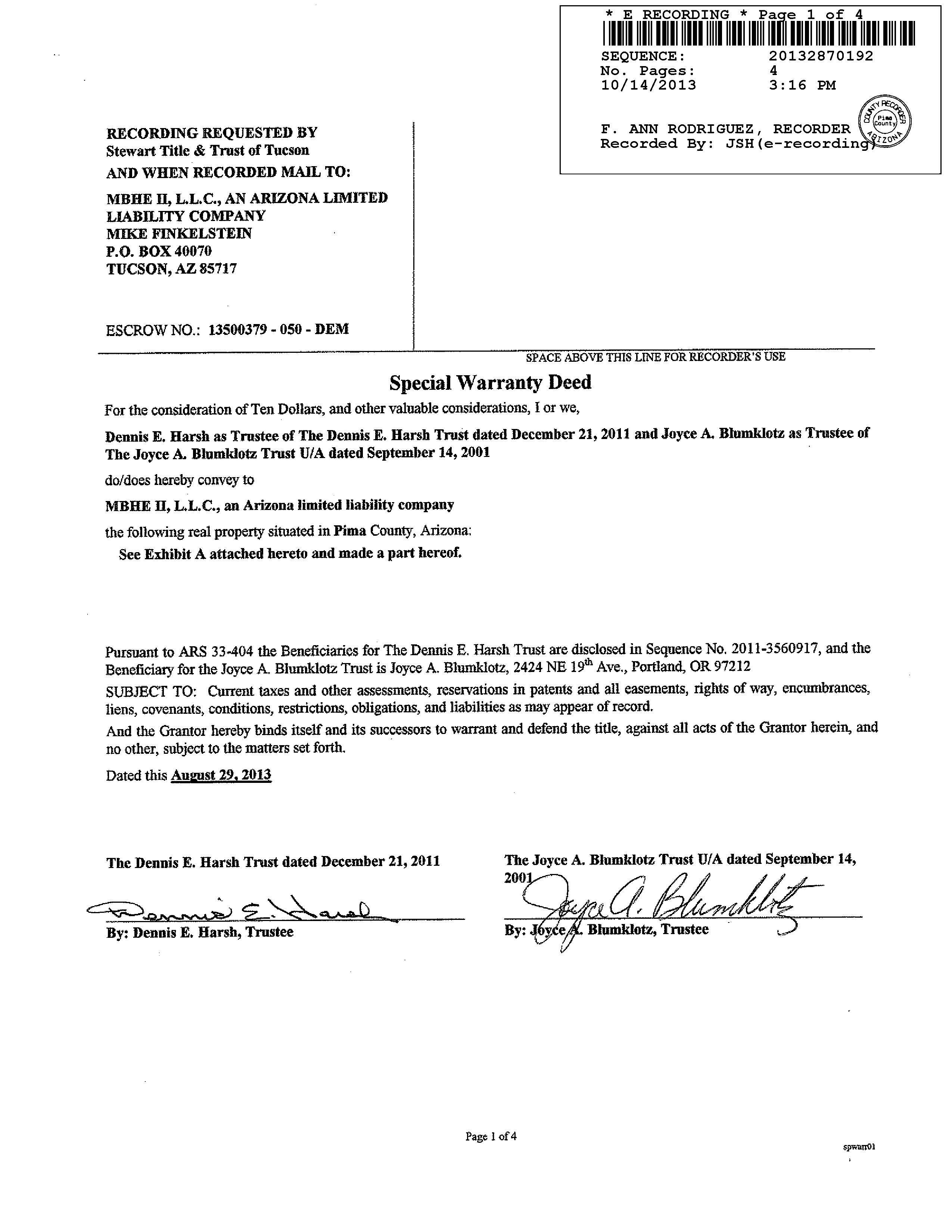 Deed Type : Special Warranty Deed