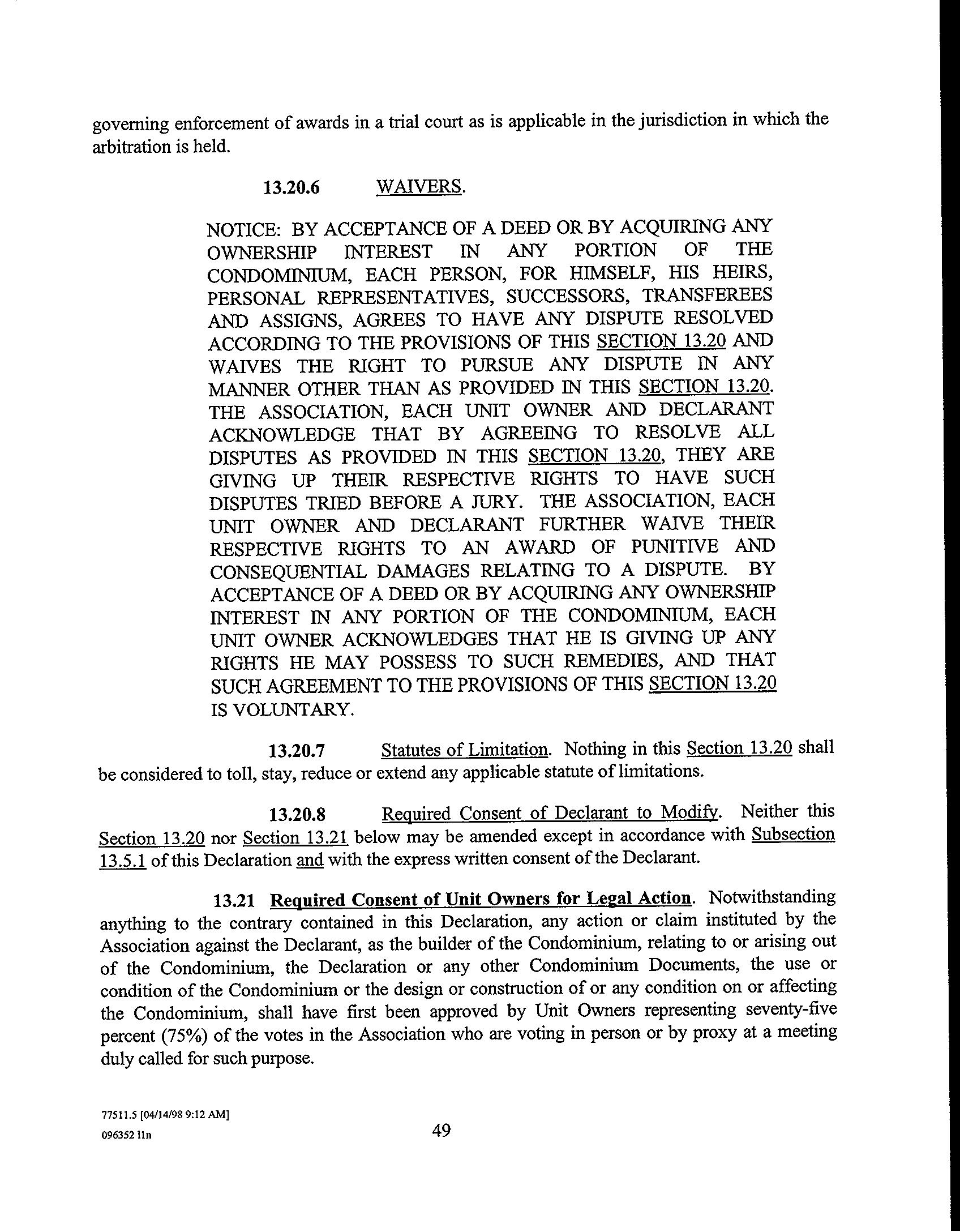 MARICOPA, AZ Document:RES 1998.307662 Page:49 of 72 Printed on:2/9/2023 11:21 AM Branch :FC0 User :JSTI