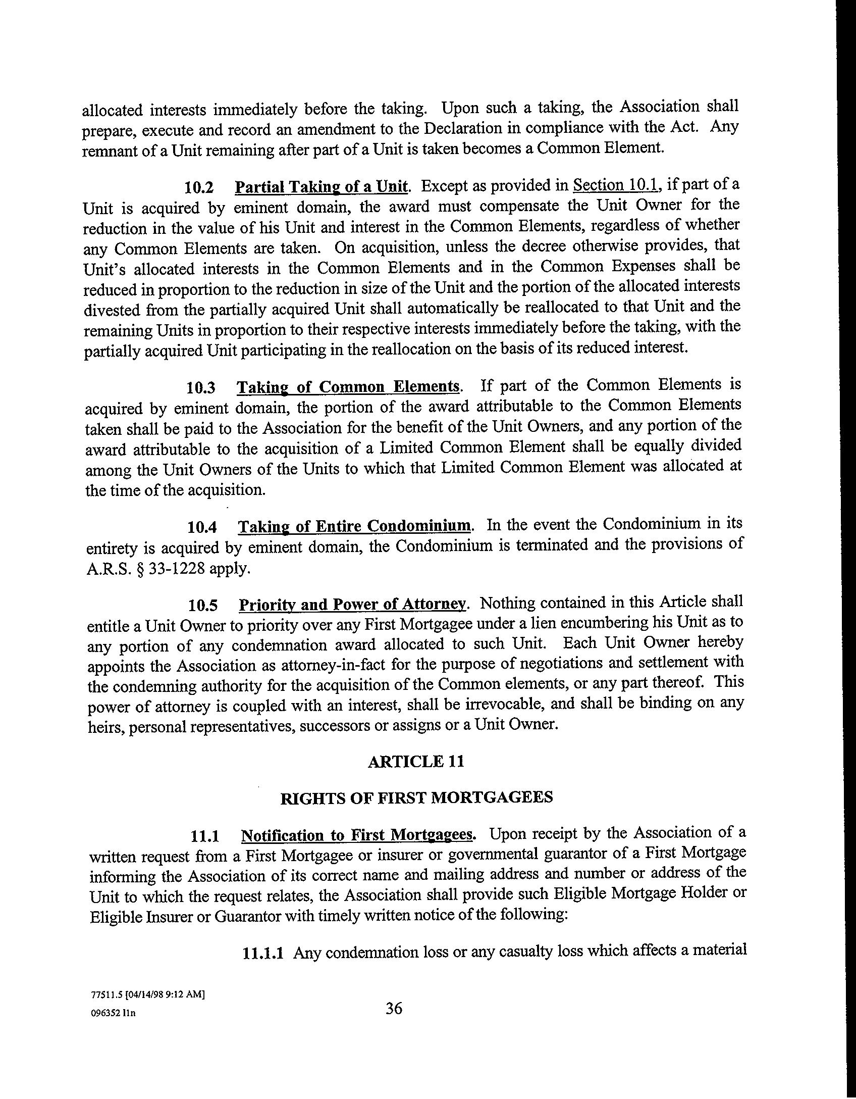 MARICOPA, AZ Document:RES 1998.307662 Page:36 of 72 Printed on:2/9/2023 11:21 AM Branch :FC0 User :JSTI