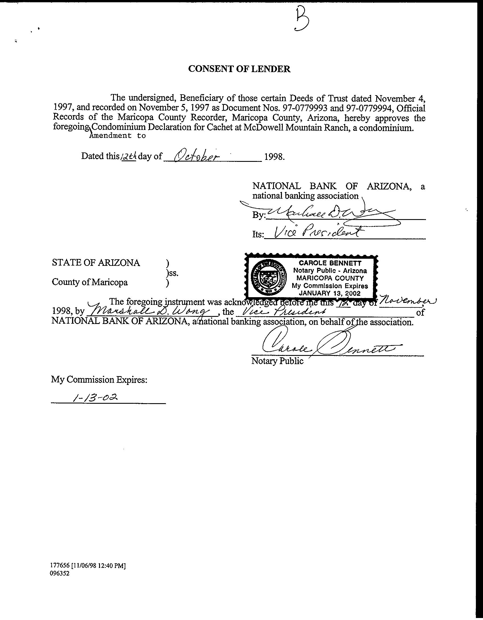 MARICOPA, AZ Document:MIS 1998.1019453B Page:12 of 12 Printed on:2/9/2023 11:21 AM Branch :FC0 User :JSTI