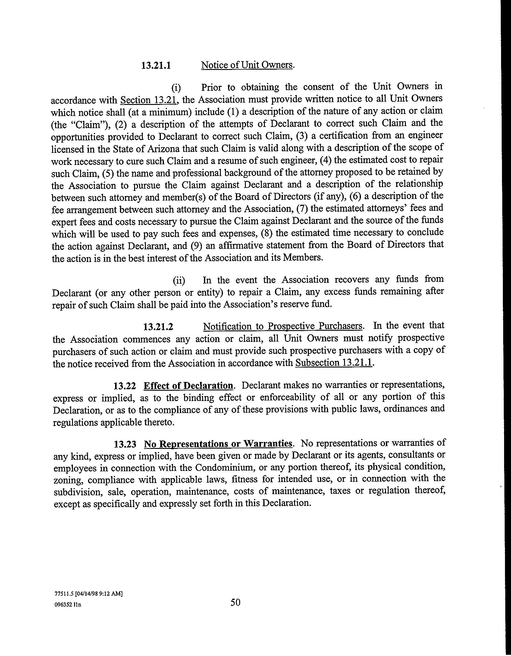 MARICOPA, AZ Document:RES 1998.307662 Page:13 of 72 Printed on:2/9/2023 11:21 AM Branch :FC0 User :JSTI