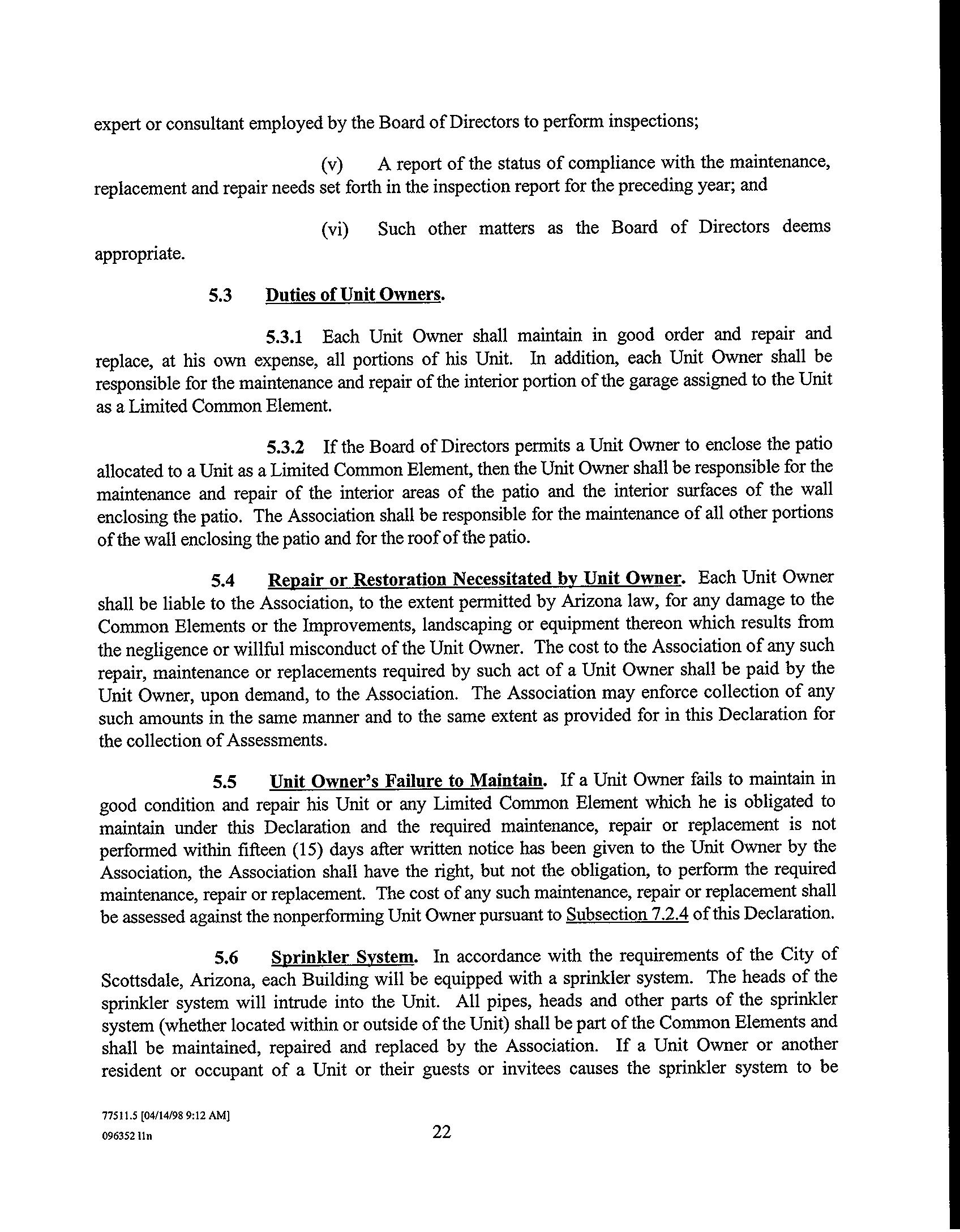 MARICOPA, AZ Document:RES 1998.307662 Page:22 of 72 Printed on:2/9/2023 11:21 AM Branch :FC0 User :JSTI