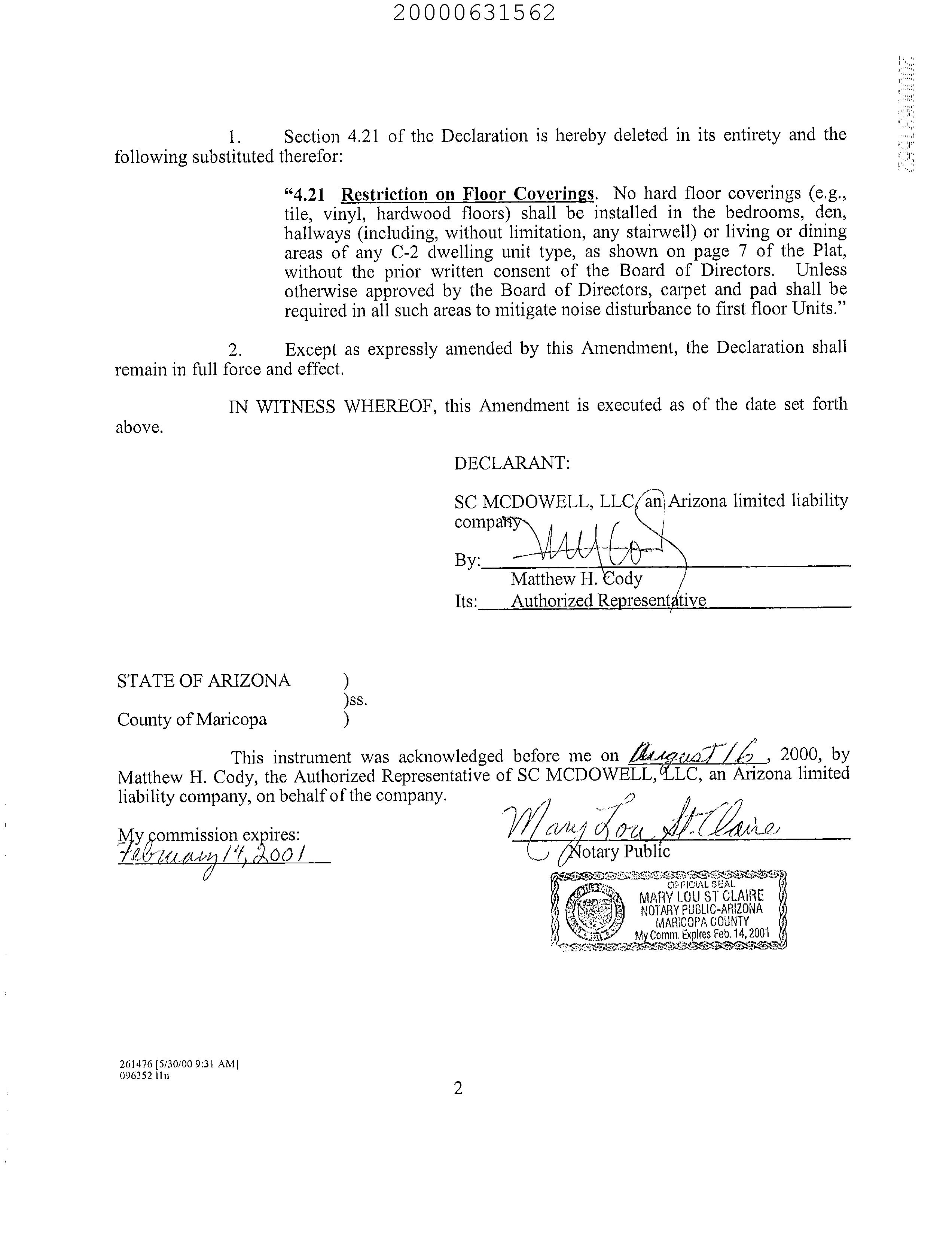 MARICOPA, AZ Document:RES AMD 2000.631562 Page:2 of 4 Printed on:2/9/2023 11:21 AM Branch :FC0 User :JSTI