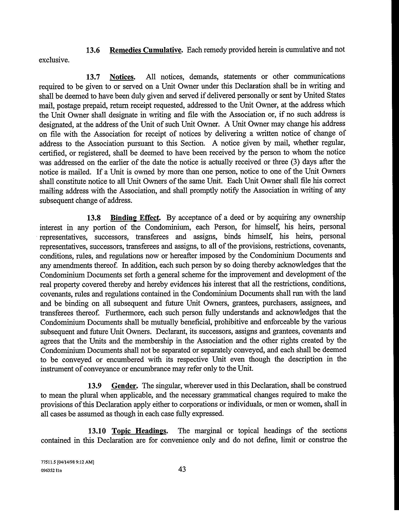 MARICOPA, AZ Document:RES 1998.307662 Page:43 of 72 Printed on:2/9/2023 11:21 AM Branch :FC0 User :JSTI