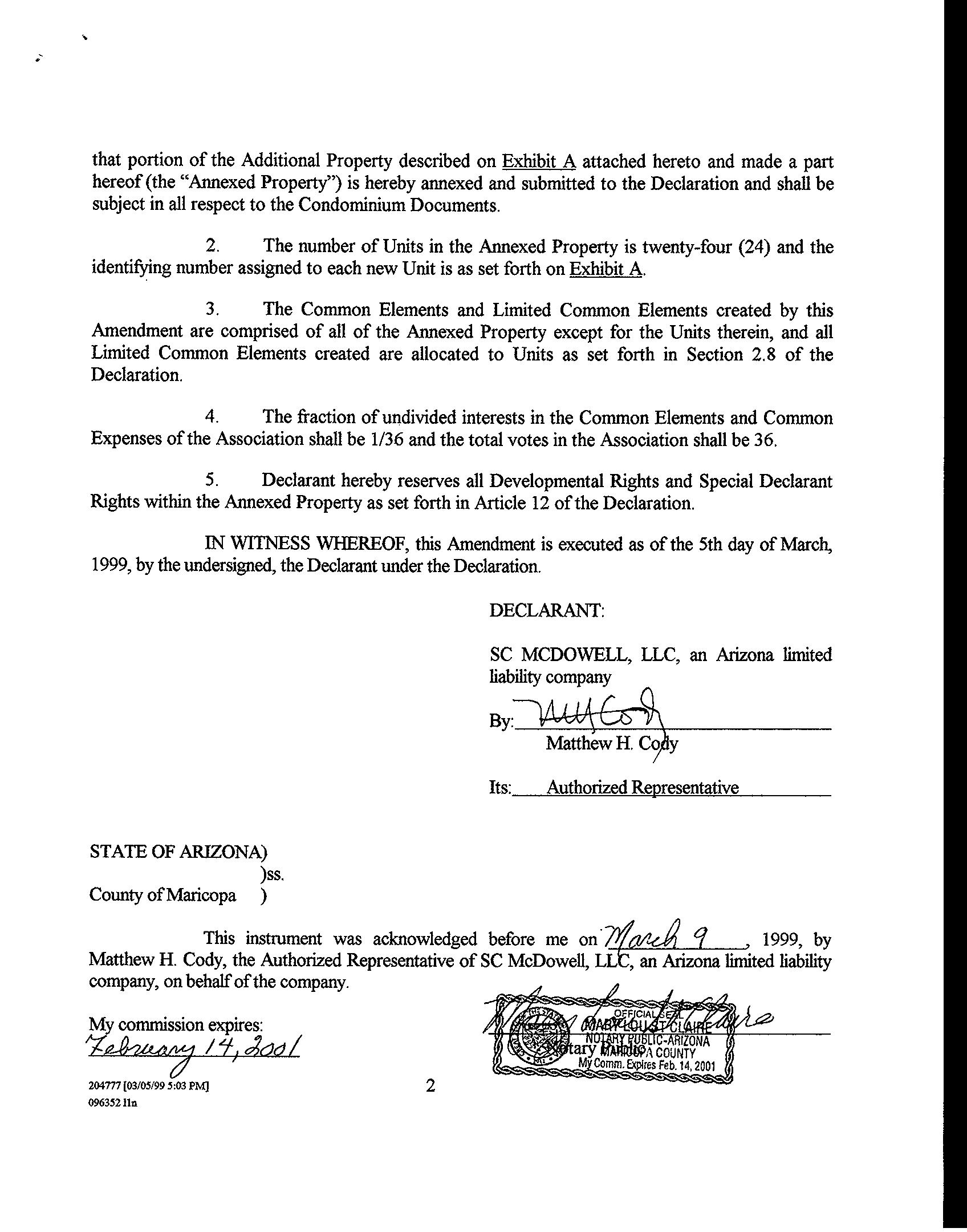 MARICOPA, AZ Document:RES AMD 1999.508756 Page:2 of 9 Printed on:2/9/2023 11:21 AM Branch :FC0 User :JSTI
