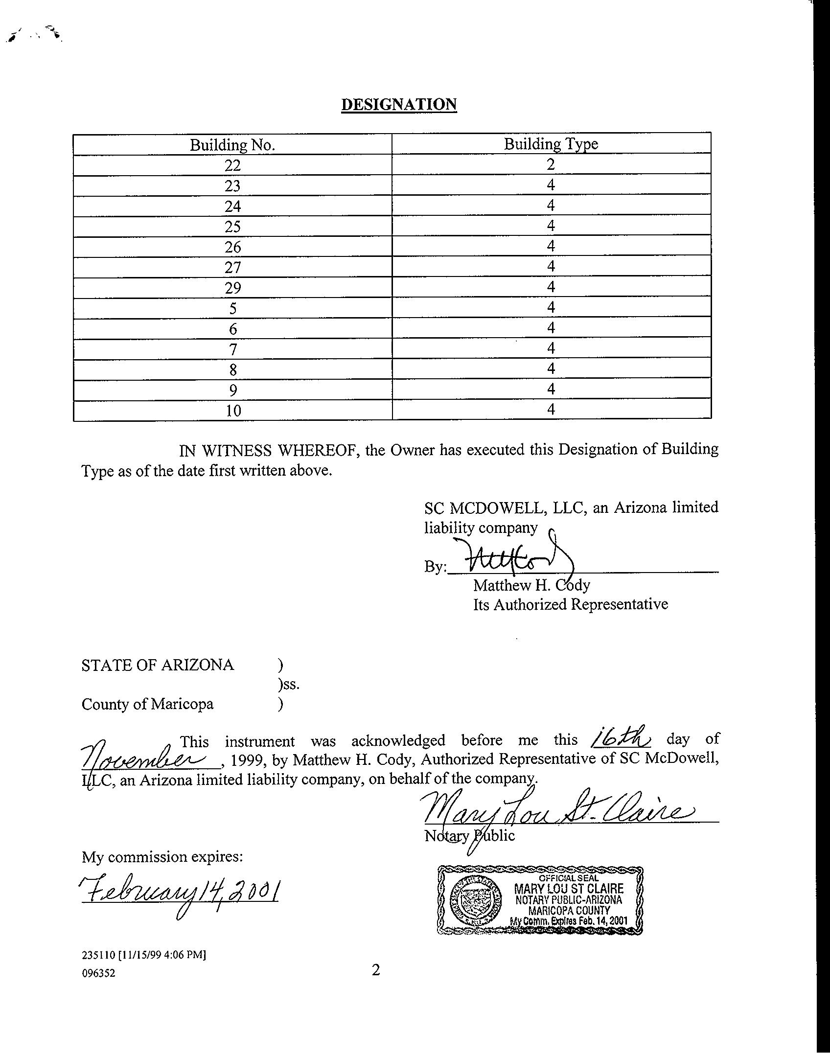 MARICOPA, AZ Document:RES AMD 1999.225908 Page:2 of 4 Printed on:2/9/2023 11:21 AM Branch :FC0 User :JSTI