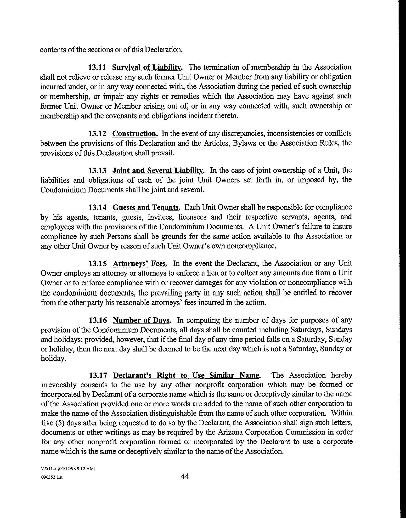 MARICOPA, AZ Document:RES 1998.307662 Page:44 of 72 Printed on:2/9/2023 11:21 AM Branch :FC0 User :JSTI