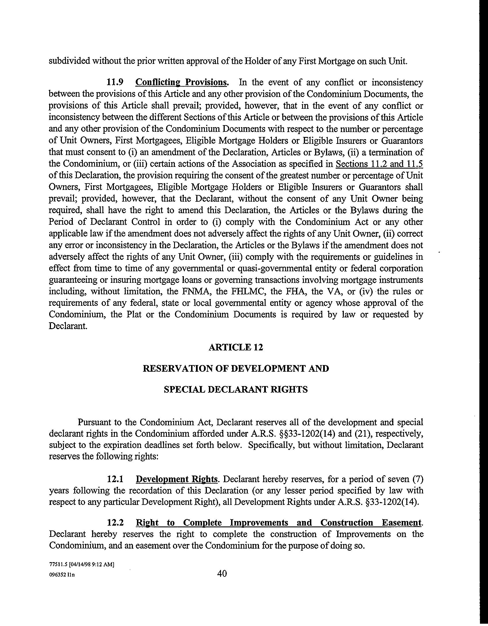 MARICOPA, AZ Document:RES 1998.307662 Page:11 of 72 Printed on:2/9/2023 11:21 AM Branch :FC0 User :JSTI