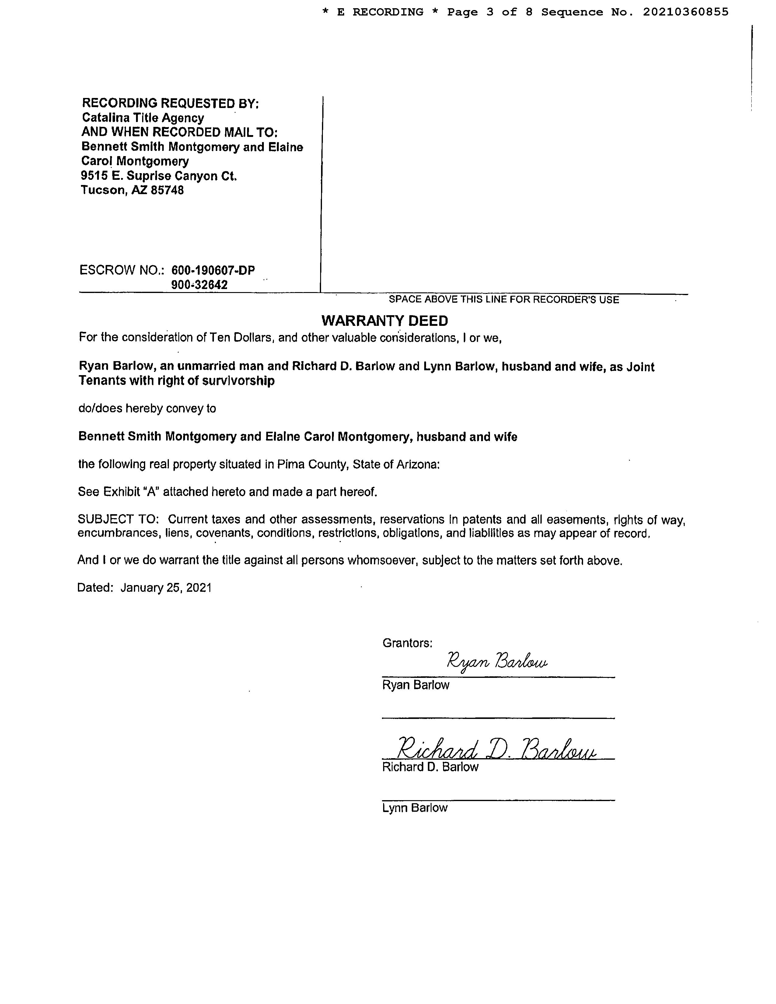 Seller Name : Barlow Richard D & Lynn