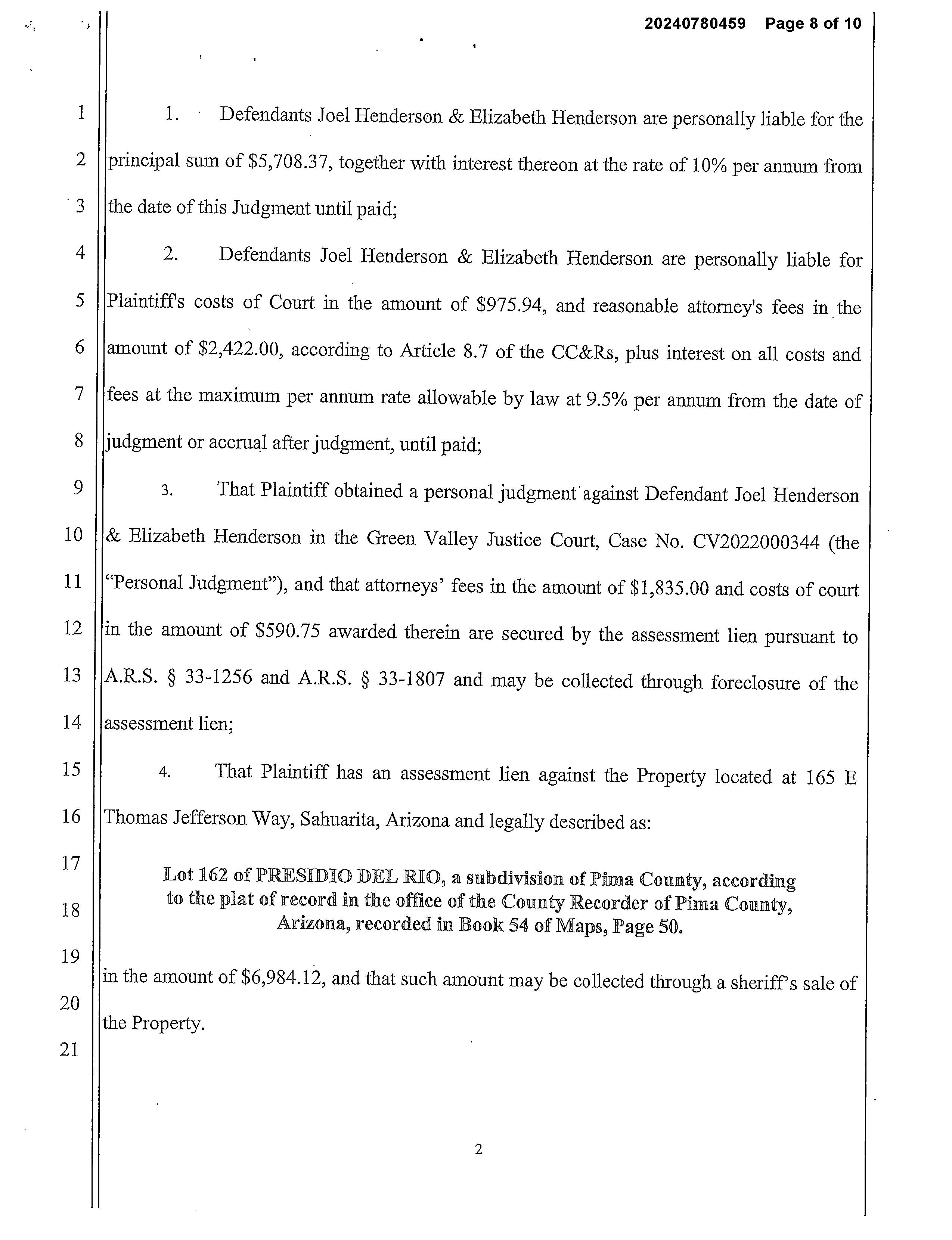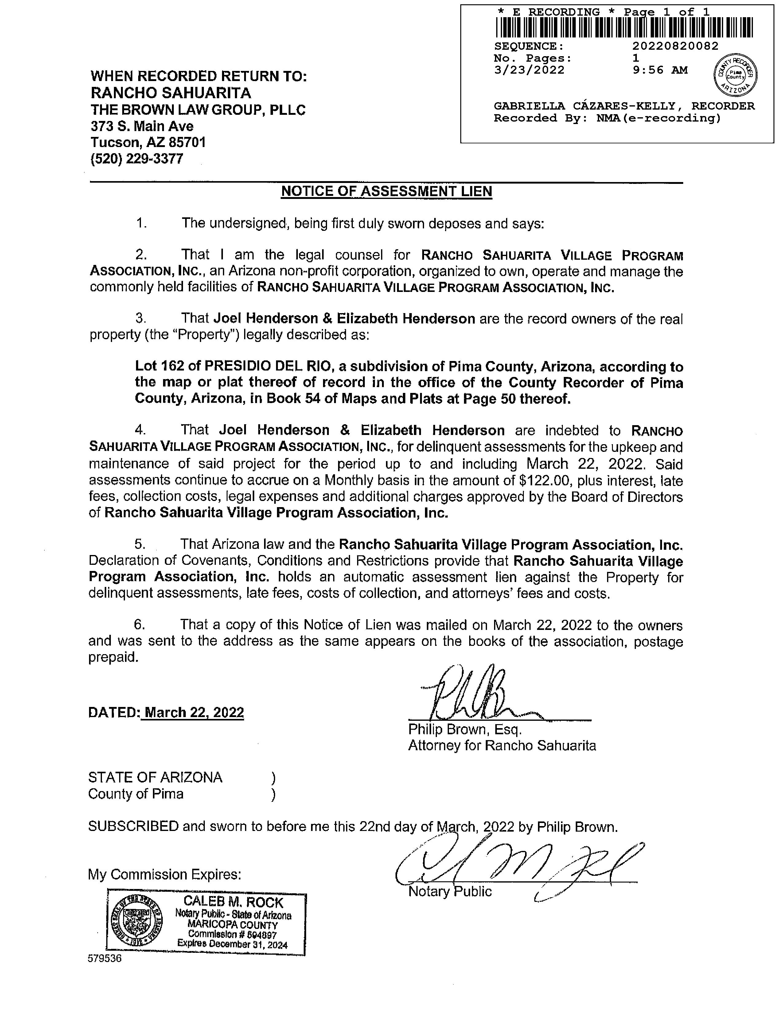 Mailing Address : 165 E Thomas Jefferson Way, Sahuarita AZ 85629-9073 R004