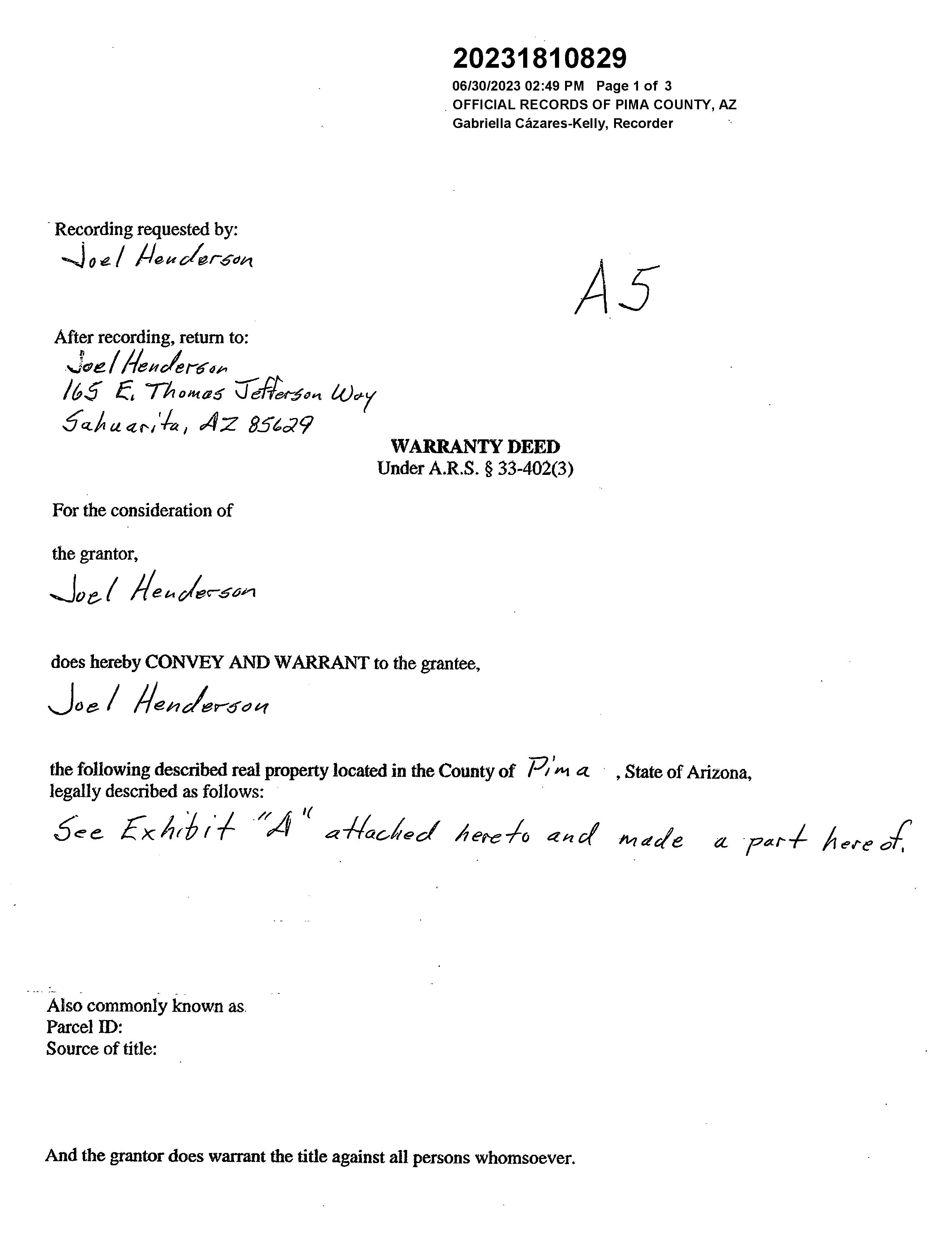 Recording/Sale Date : 06/30/2023 / 06/30/2023 Deed Type : Warranty Deed