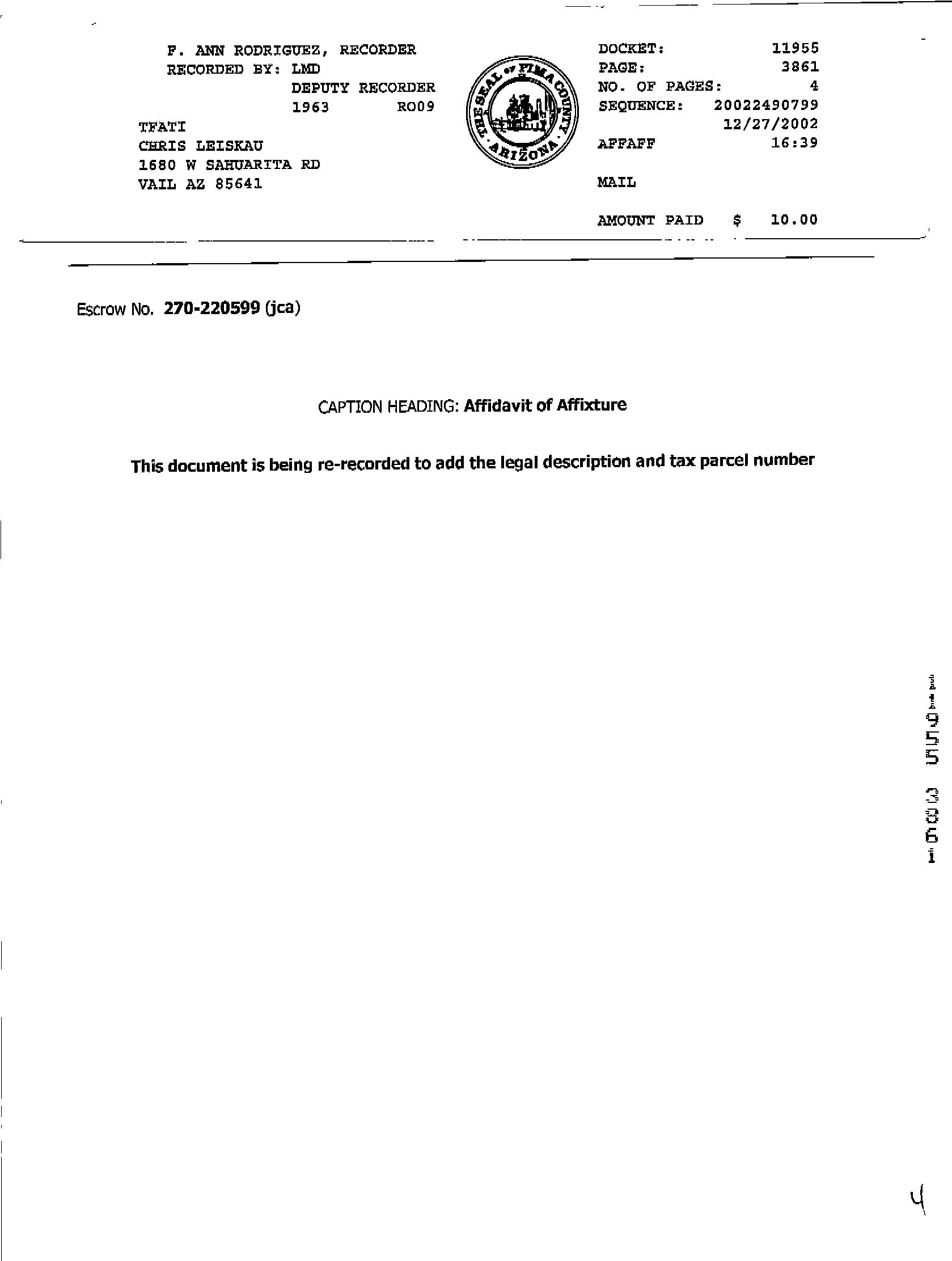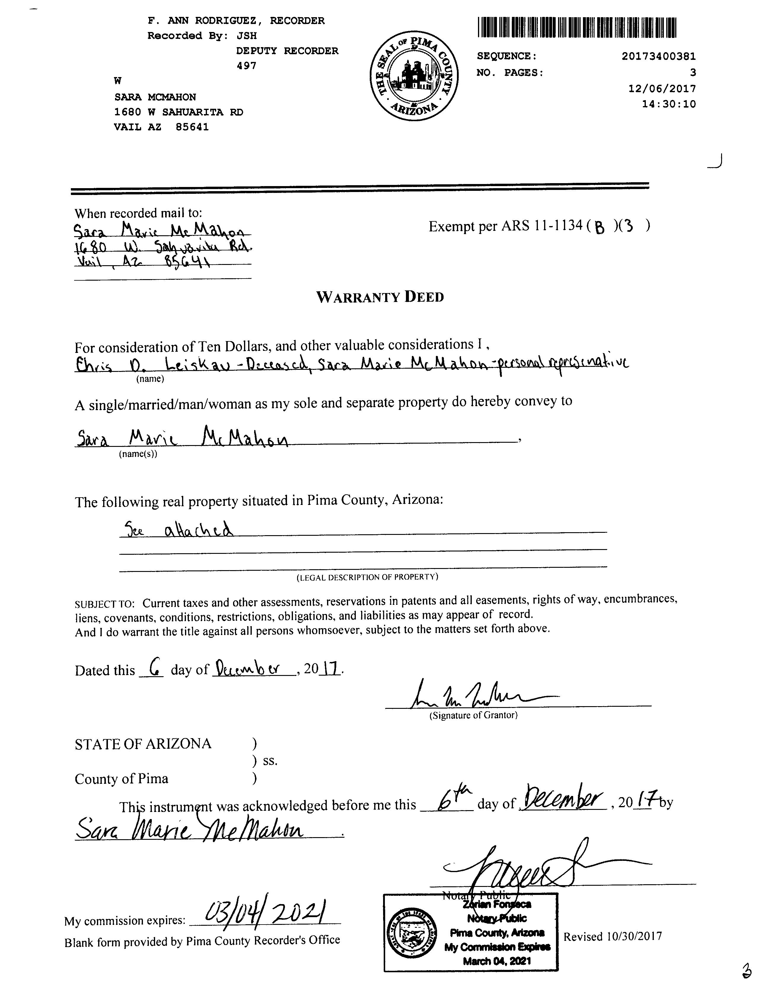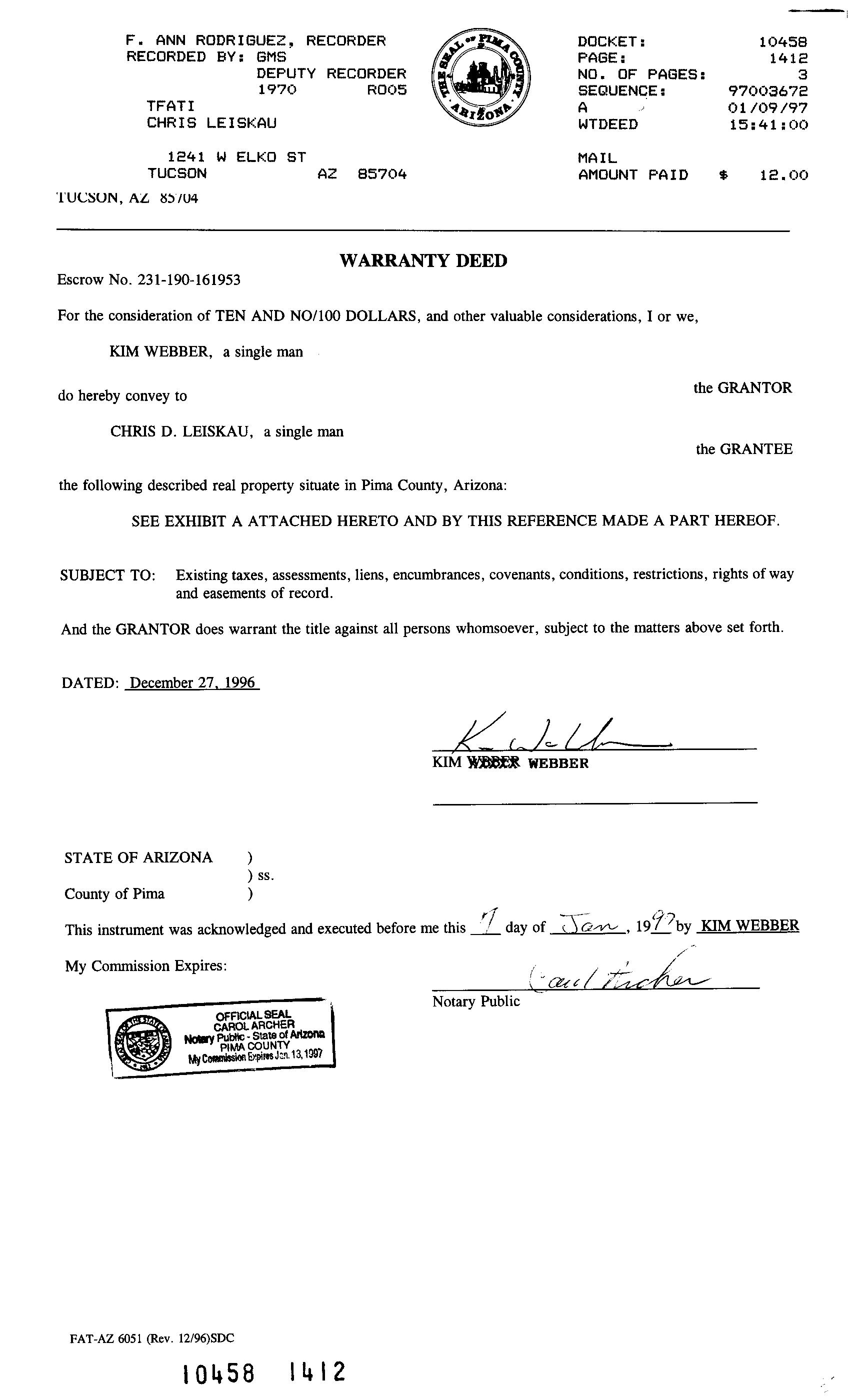 Owner Name : Gonzales Ricky M Recording Date : 03/19/1998