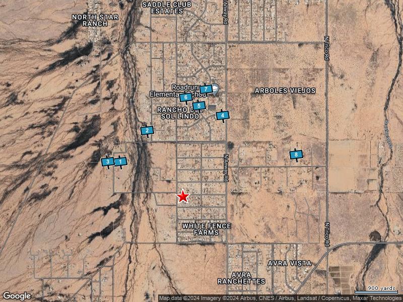 Criteria Subject Property Low High Average Sale Price $132,500 $156,000 $310,000 $248,000 Bldg/Living Area 1680 1568 1792 1668 Price Per Square Foot $78.87 $91 $175 $148.95 Year Built 1995 1995 2007 1999 Lot Size 44,668 44,832 217,800 105,521 Bedrooms Bathrooms Stories 1 1 1 1 Total Assessed Value $92,011 $52,422 $80,962 $67,596 Distance From Subject 0 0.7 1.2 0.91 Summary of Comparables # Address Sale Price Total Assessed Value Sale Date Bed Bath Living Area Lot Size Year Built Dist (Miles) Zoning S 16940 W Falcon Ln 132,500 92,011 04/13/2010 1,680 44,668 1995 SH 1 17450 W Whitewing Way 310,000 76,930 11/30/2023 1,792 217,800 1999 0.7 RH 2 17260 W Jaguar Ln 156,000 80,962 05/30/2024 1,708 47,480 1998 0.74 GR-1 3 17550 W Whitewing Way 235,000 52,422 04/24/2024 1,568 217,800 2007 0.81 RH 4 11323 N Anway Rd 208,000 55,882 08/08/2023 1,664 44,832 1996 0.89 SH 5 11421 N Paseo Alejandro 260,000 67,242 04/23/2024 1,568 44,997 1995 0.9 SH 6 11470 N Derringer Rd 275,000 69,662 09/05/2023 1,792 45,719 1997 0.98 SH 7 16729 W Calle Carmela 265,000 61,411 05/31/2024 1,680 45,202 1996 1.08 SH 8 11010 N Waite Rd 275,000 76,253 02/28/2024 1,568 180,338 2002 1.2 RH Distressed Sales = Customer Name : Jeremiah Stiffler Customer Company Name : First American Prepared On : 06/19/2024 © 2024 CoreLogic. All rights reserved