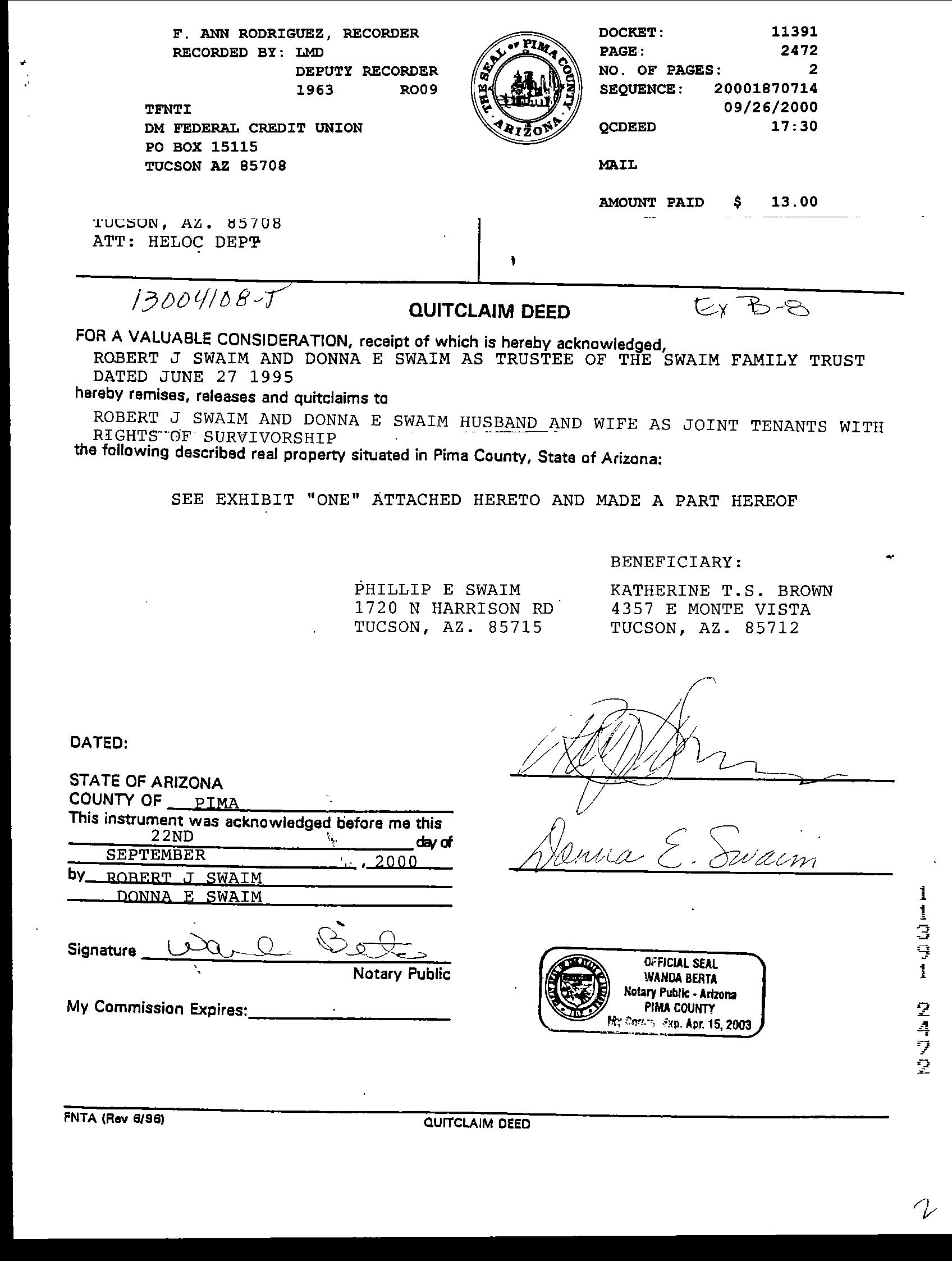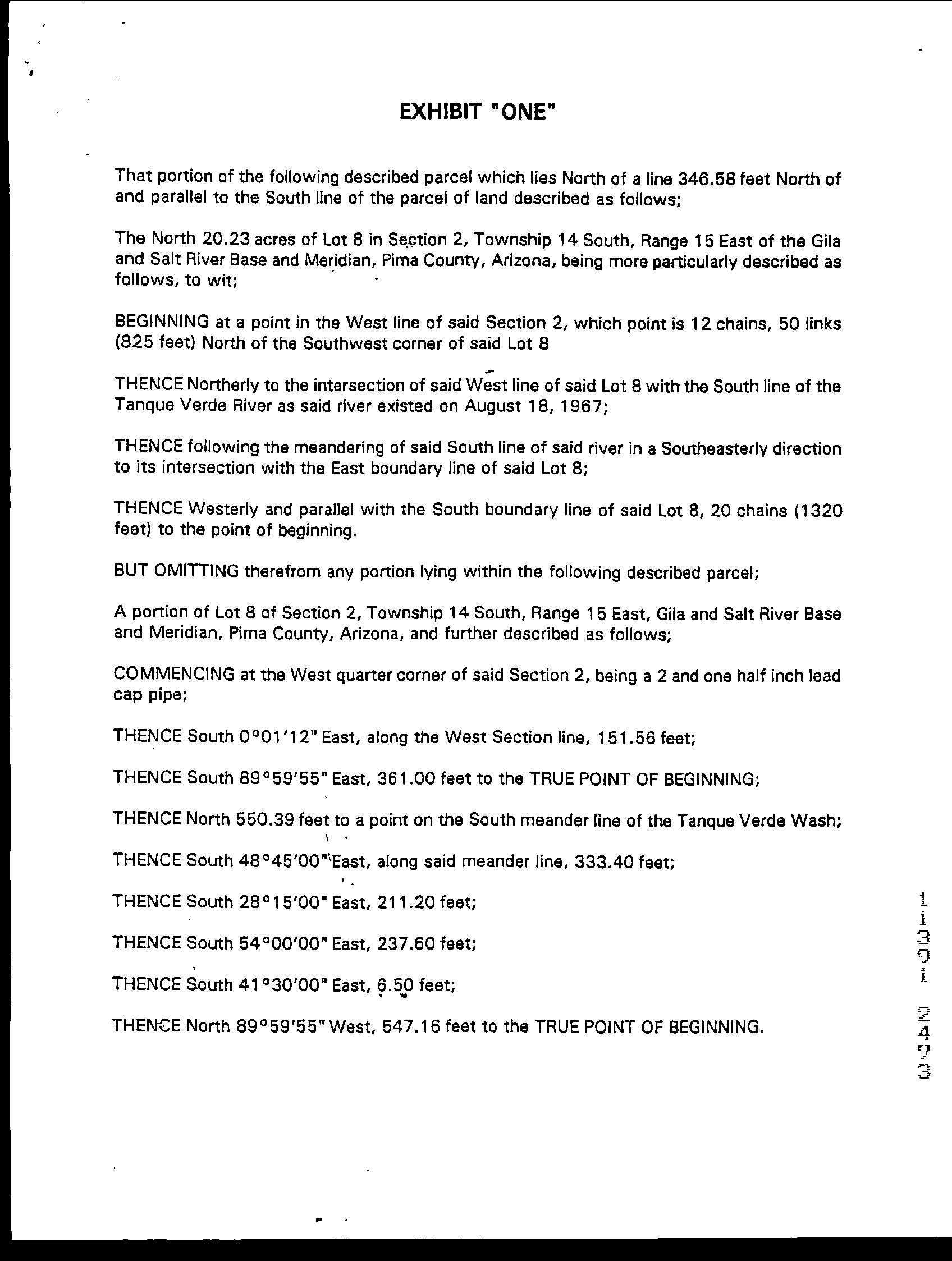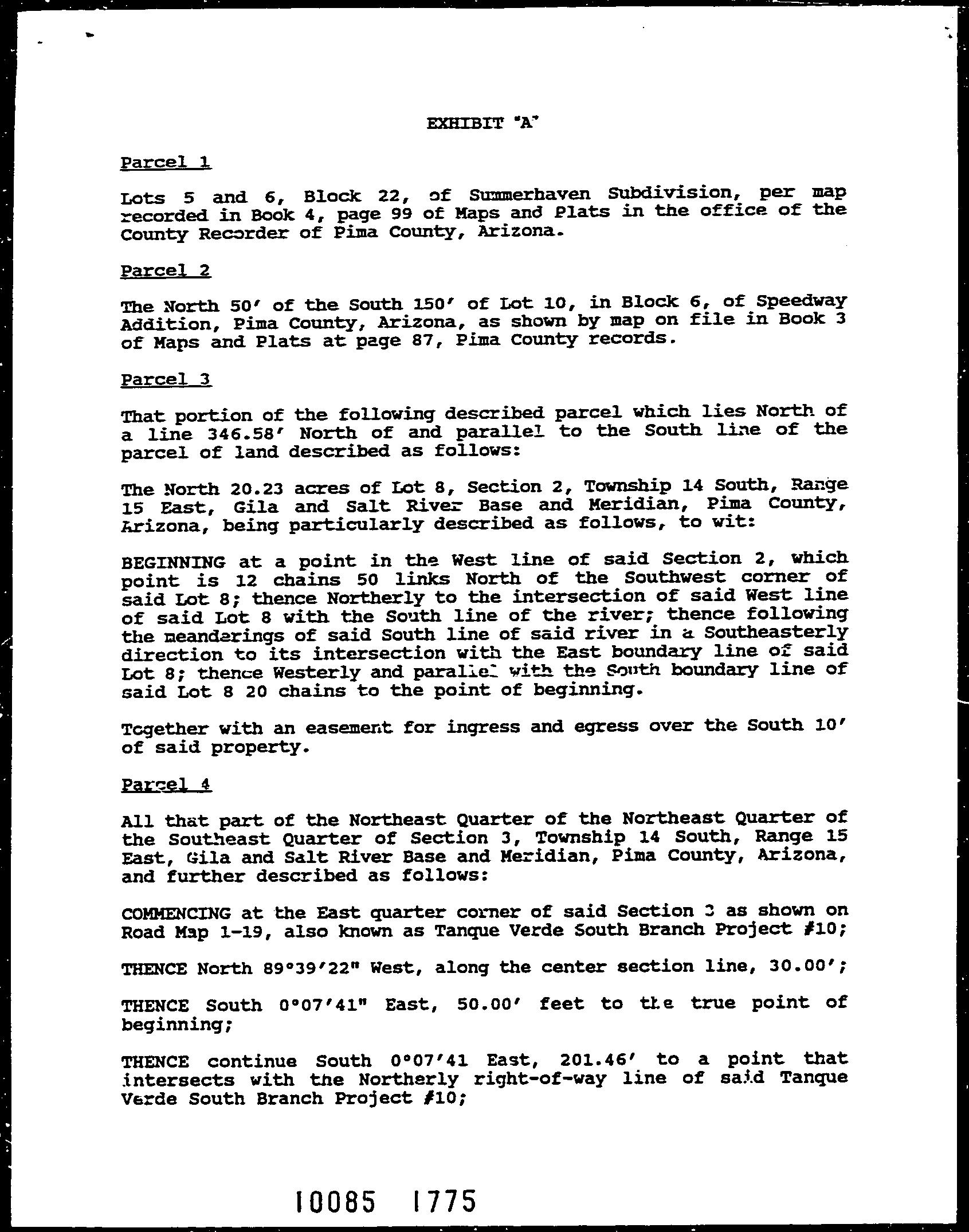 Legal Description : W361' Of Lot 8 Lyg Sly Of & Adj To Tanque Verde Wash 5.86 Ac Sec 2-14-15 (10085/1774 11391/2472 11397/172)