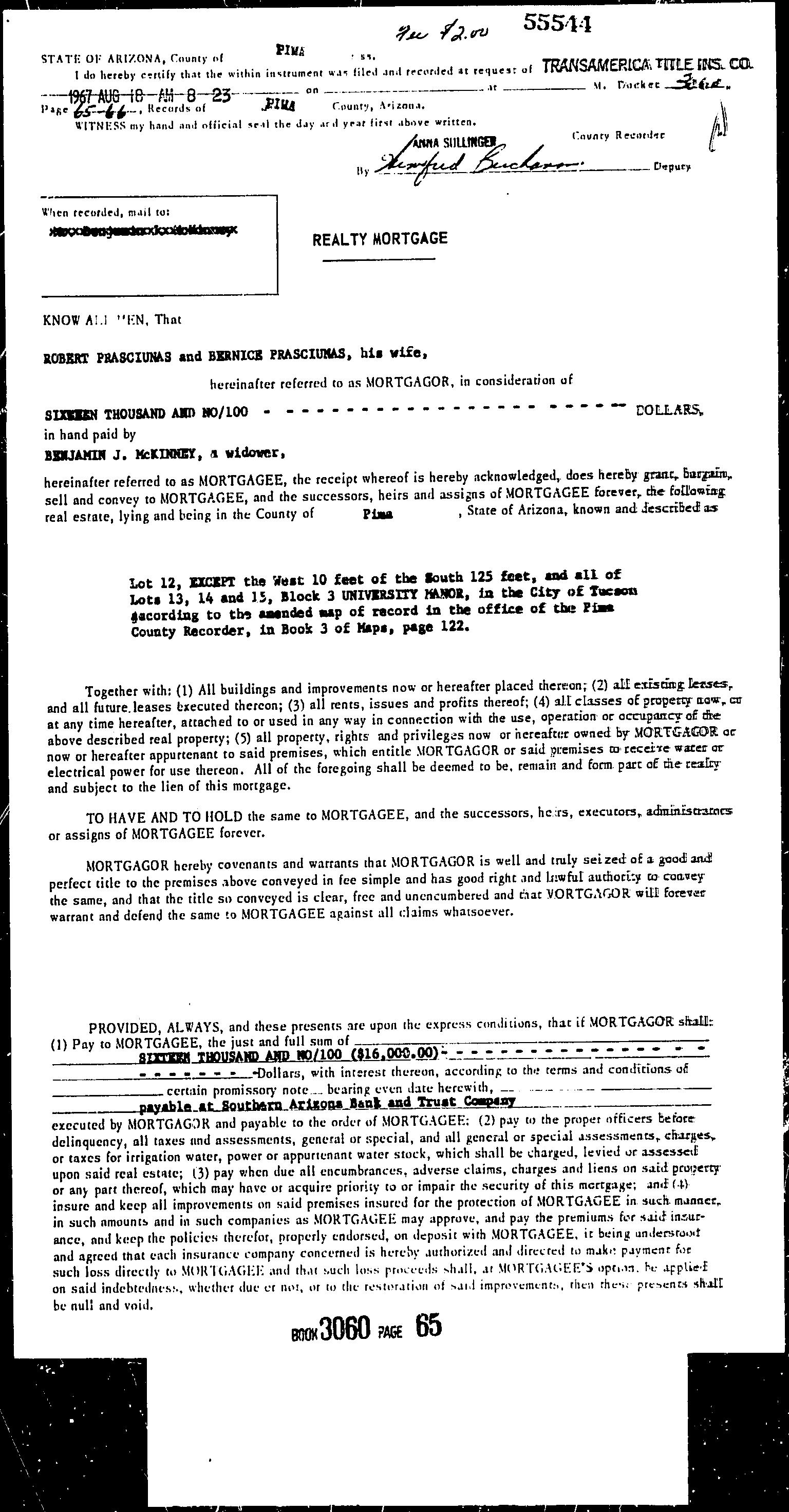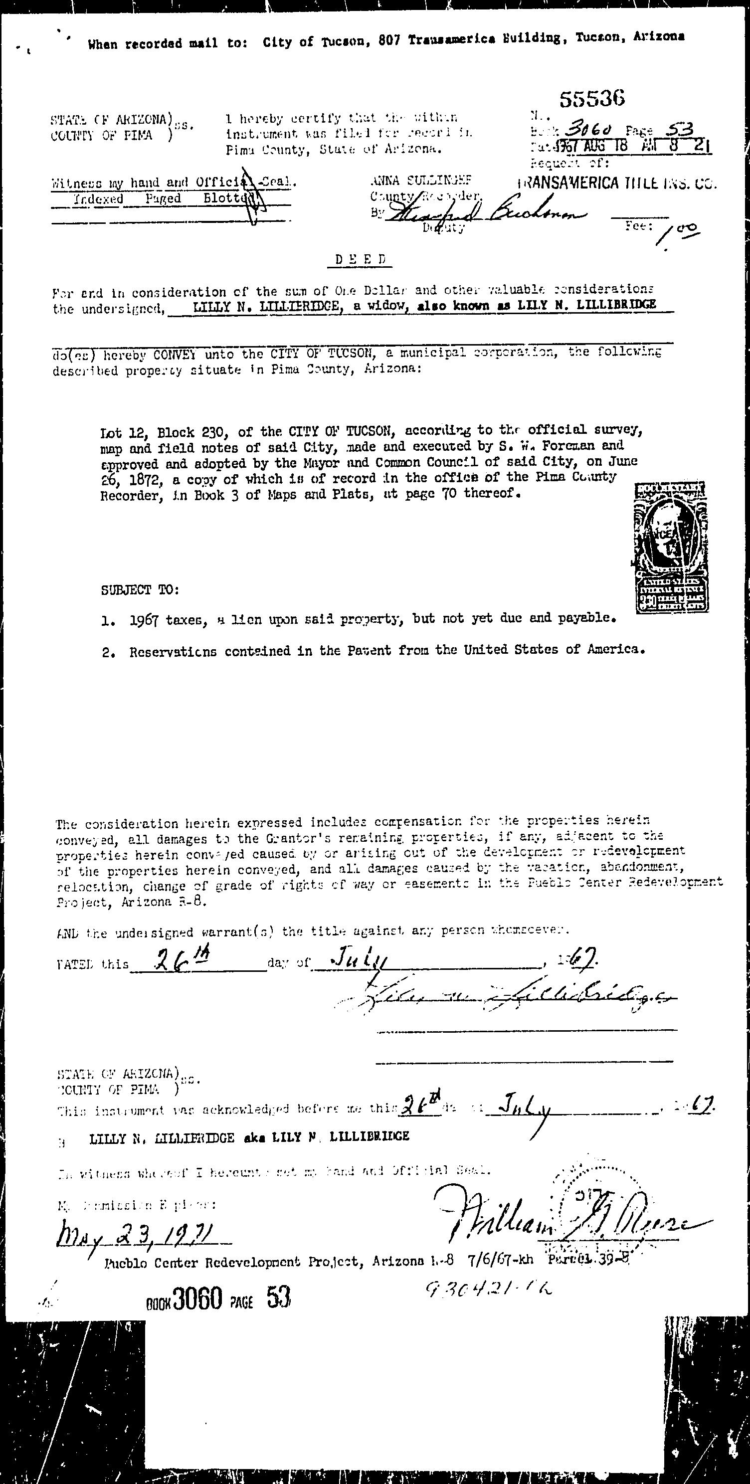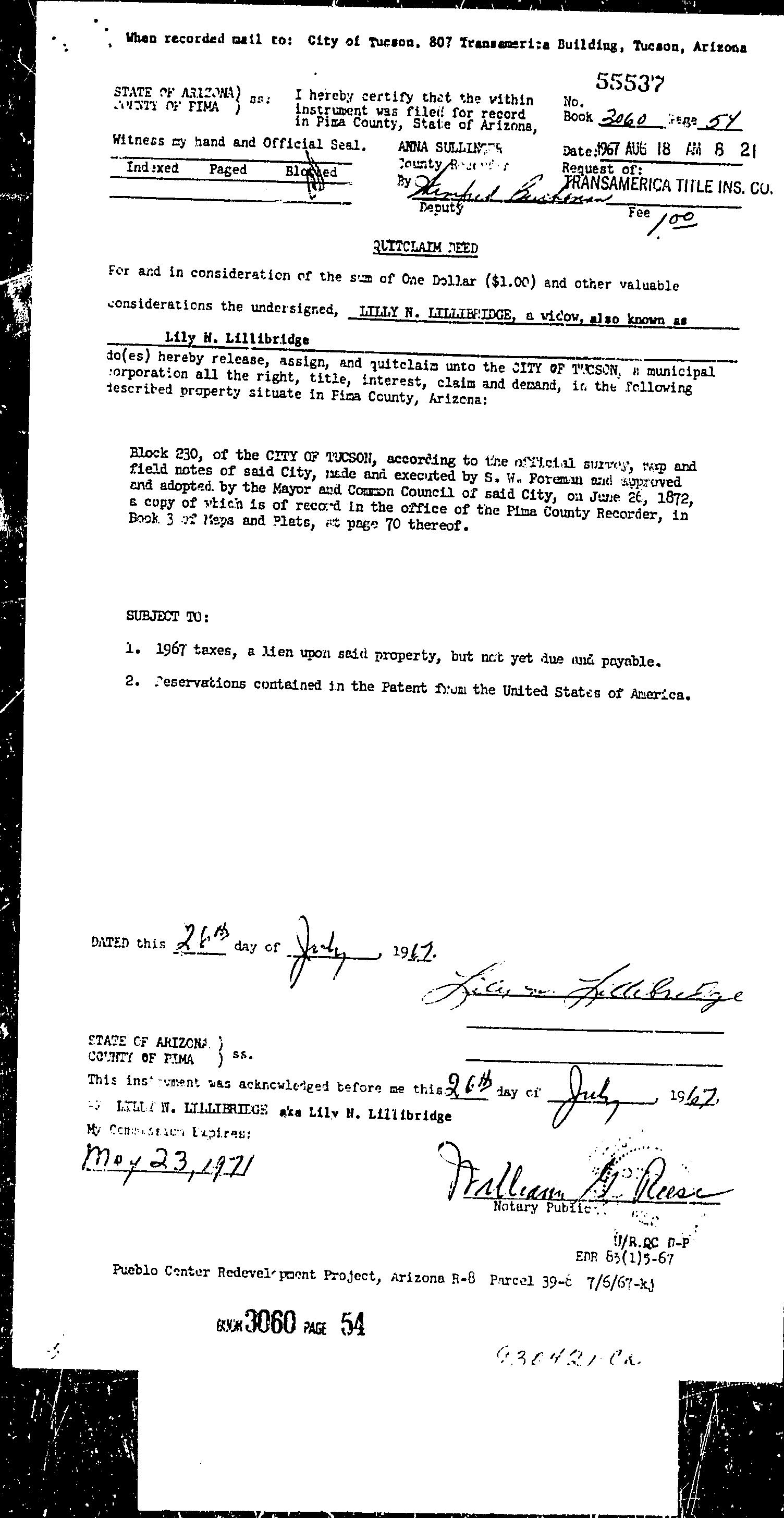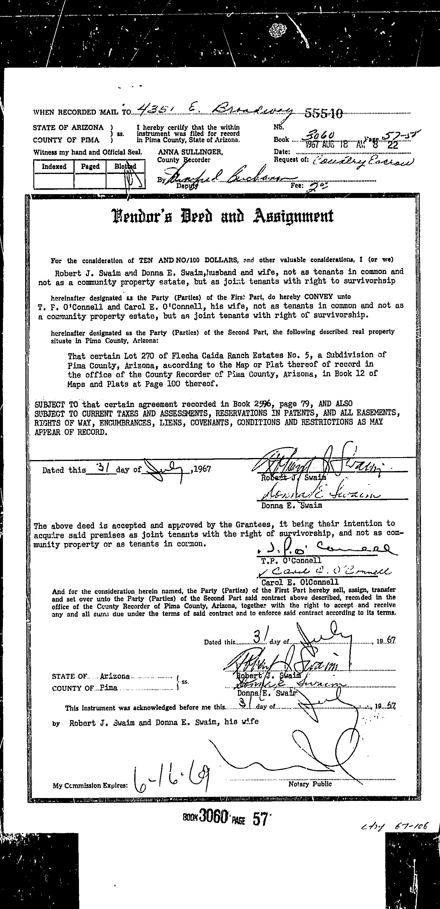Legal Description : W361' Of Lot 8 Lyg Sly Of & Adj To Tanque Verde Wash 5.86 Ac Sec 2-14-15 (10085/1774 11391/2472 11397/172)