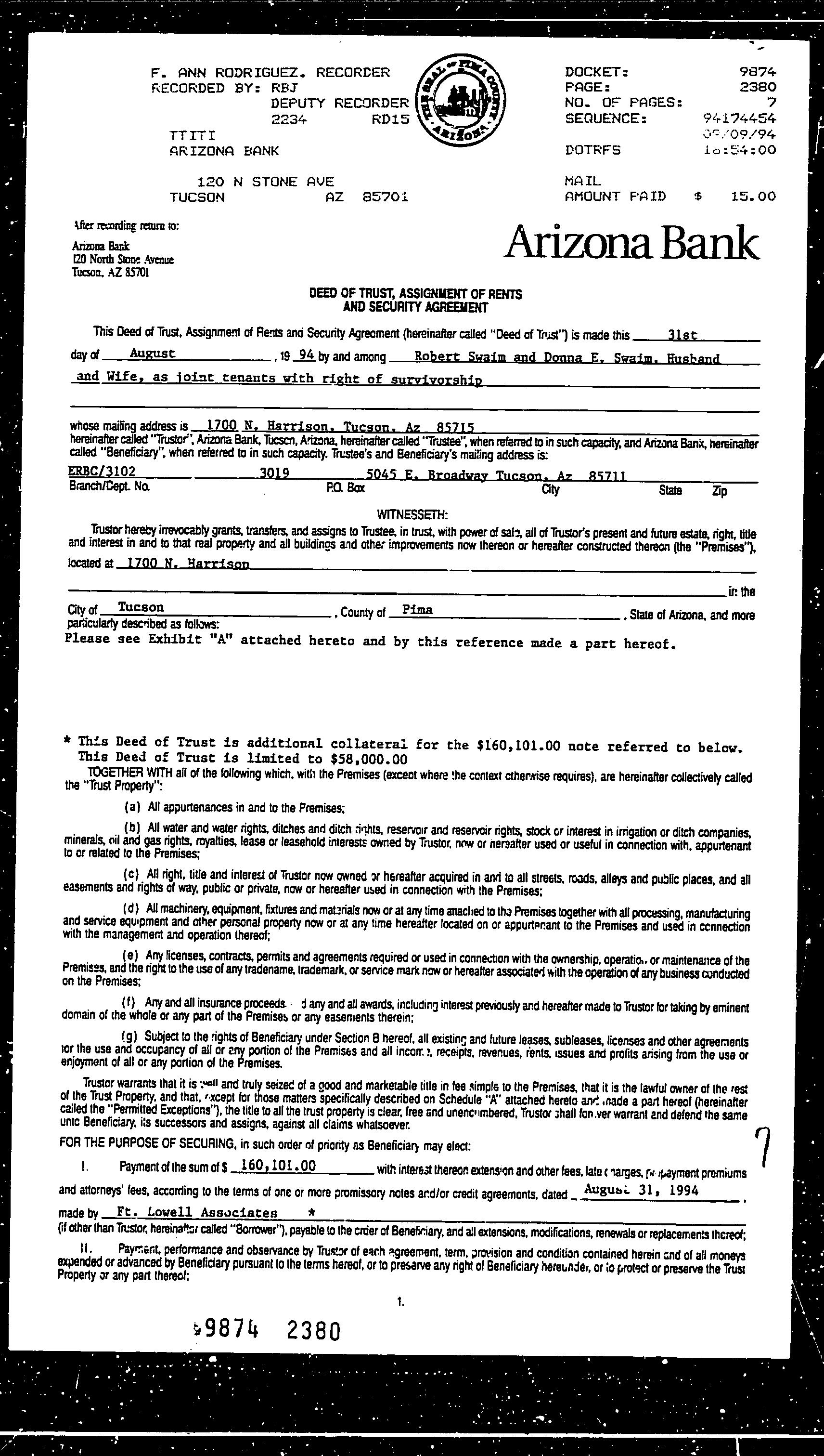 Mailing Address : 1700 N Harrison Rd, Tucson AZ 85715-5505 C034