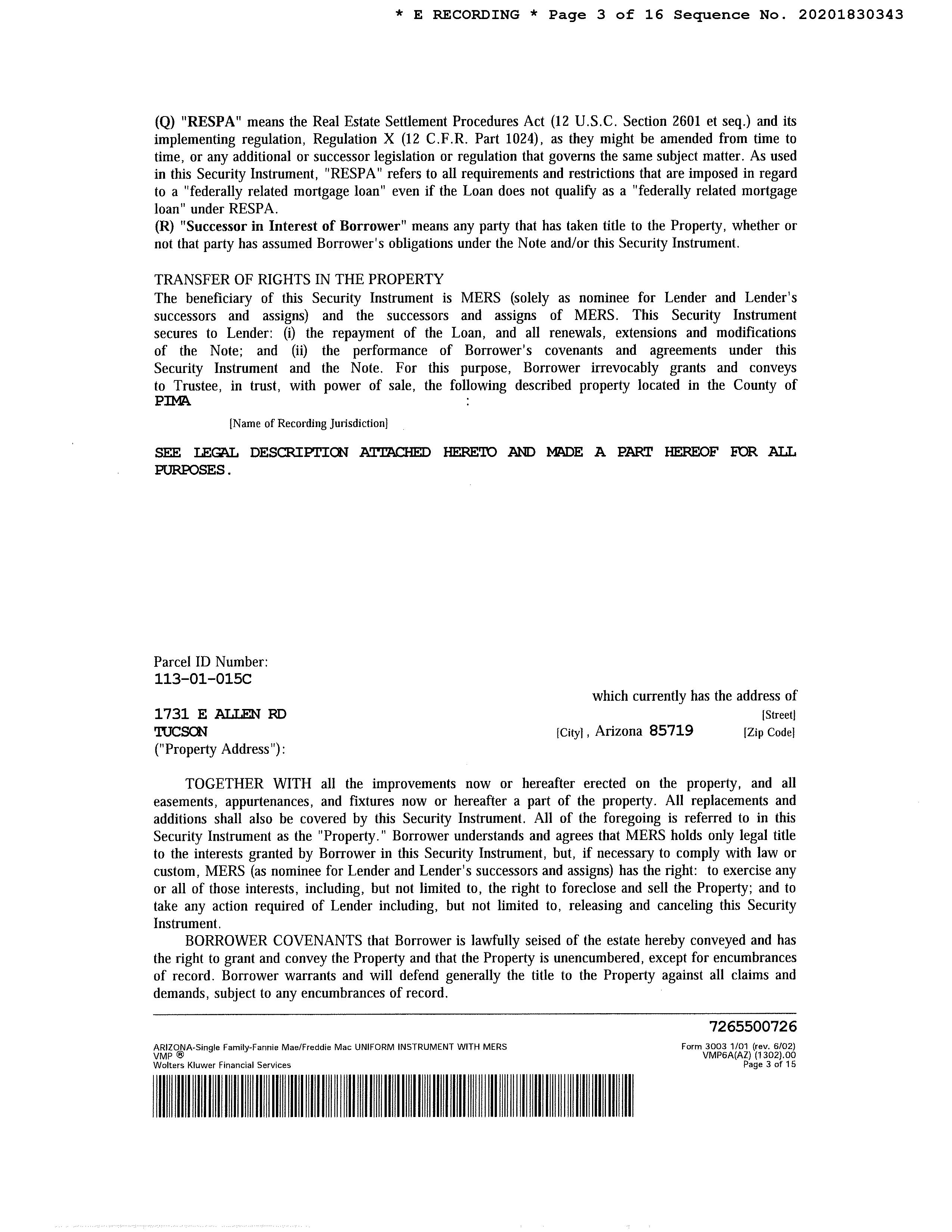 Owner Name : Richardson R Thomas Recording Date : 11/20/2015
