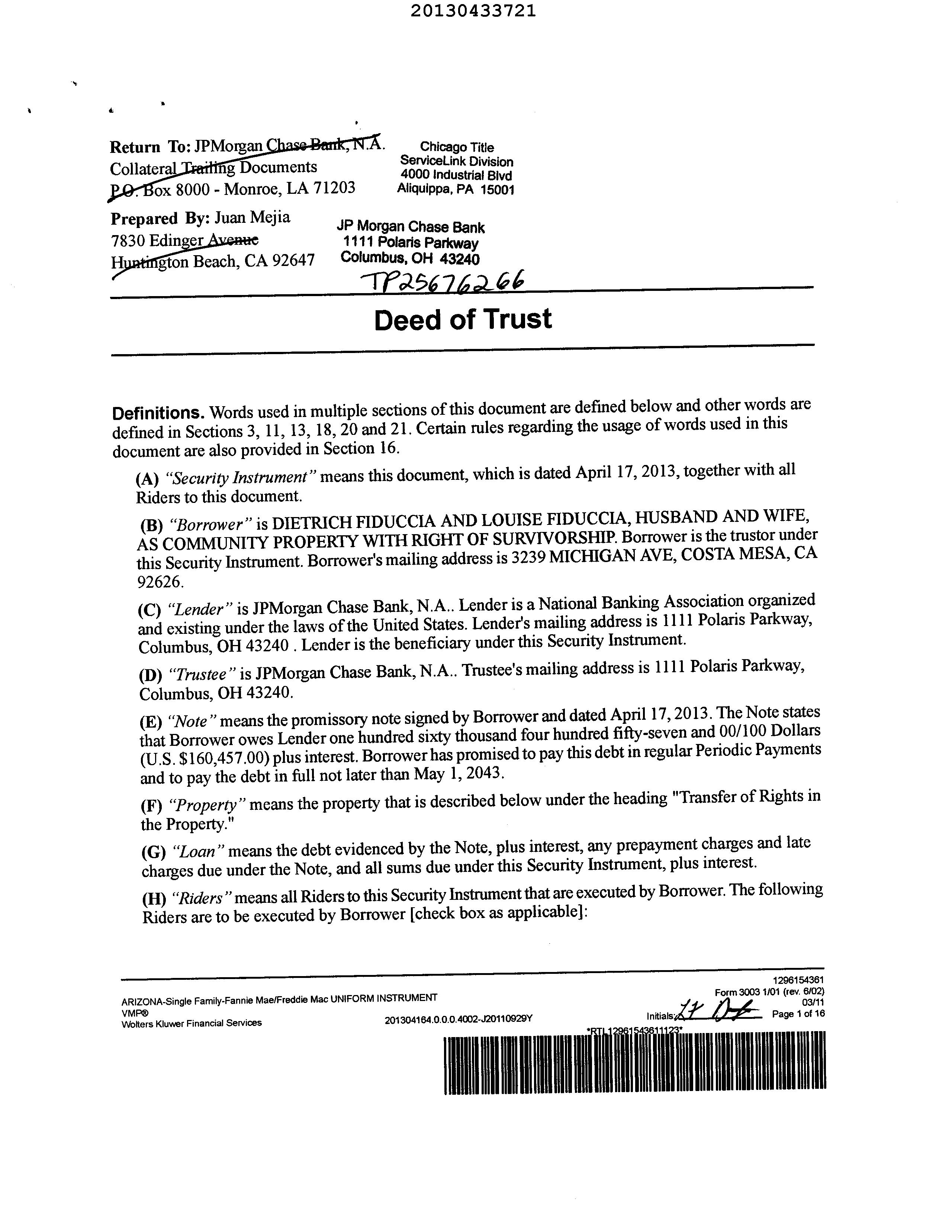 Owner Name: Fiduccia Dietrich /Fiduccia Louise