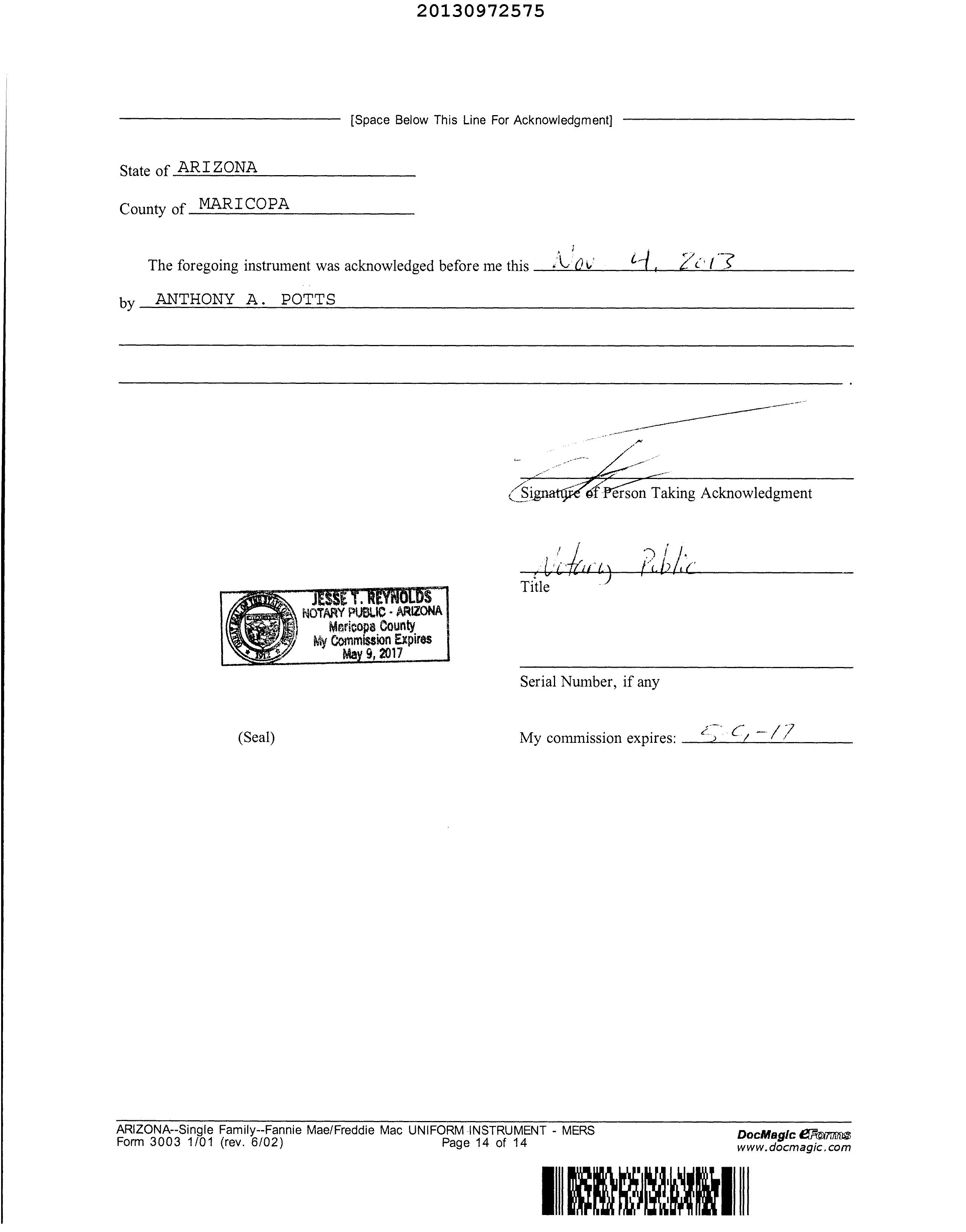 MARICOPA, AZ Document:DOT 2013.972575 Page:17 of 20 Printed on:1/30/2023 3:45 PM Branch :FC0 User :JSTI