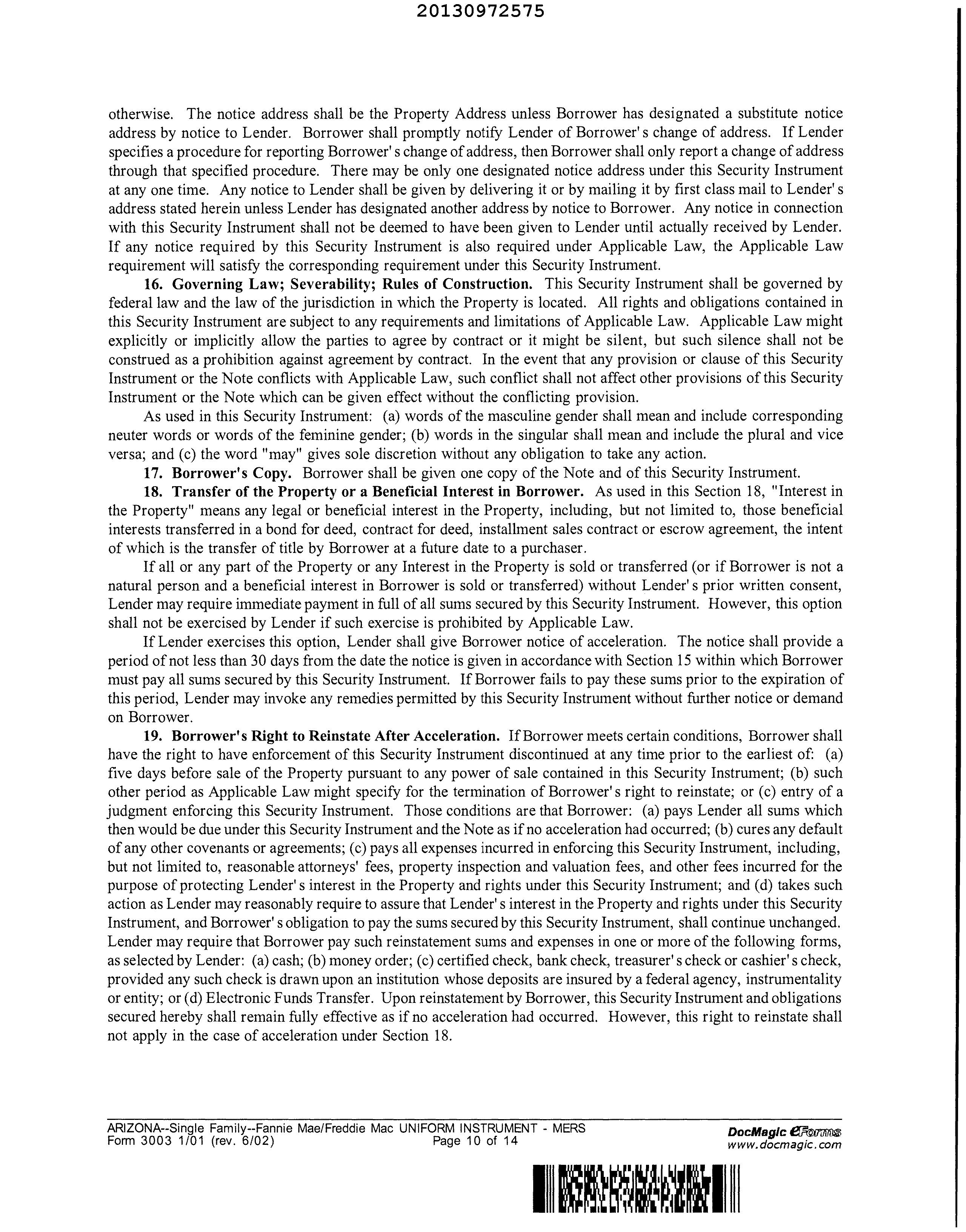 MARICOPA, AZ Document:DOT 2013.972575 Page:10 of 20 Printed on:1/30/2023 3:45 PM Branch :FC0 User :JSTI