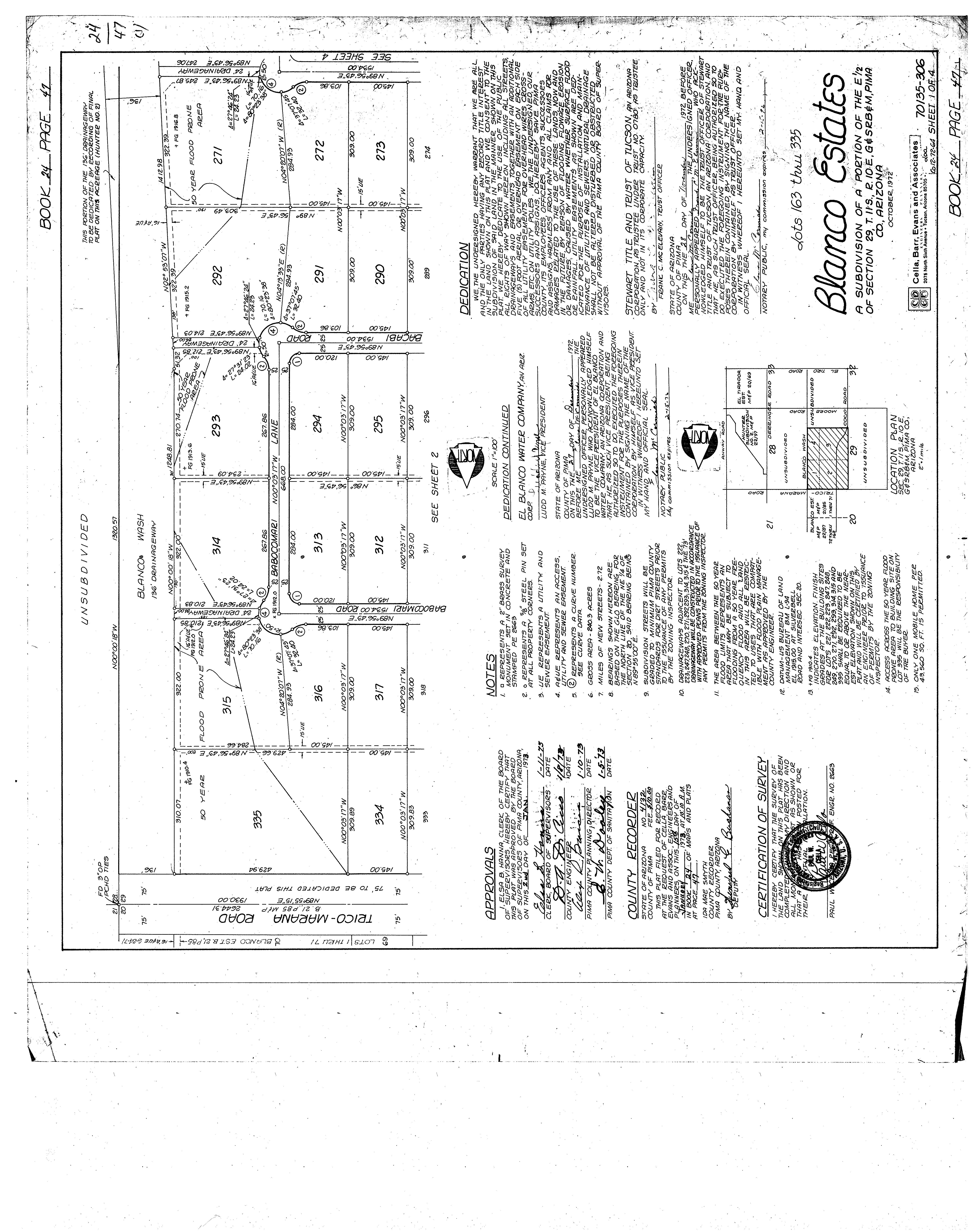PIMA, AZ Document:SUBDIVISION_MAP 24.47 Page:1 of 4 Printed on:7/12/2023 1:01 PM Branch :FC0 User :JSTI