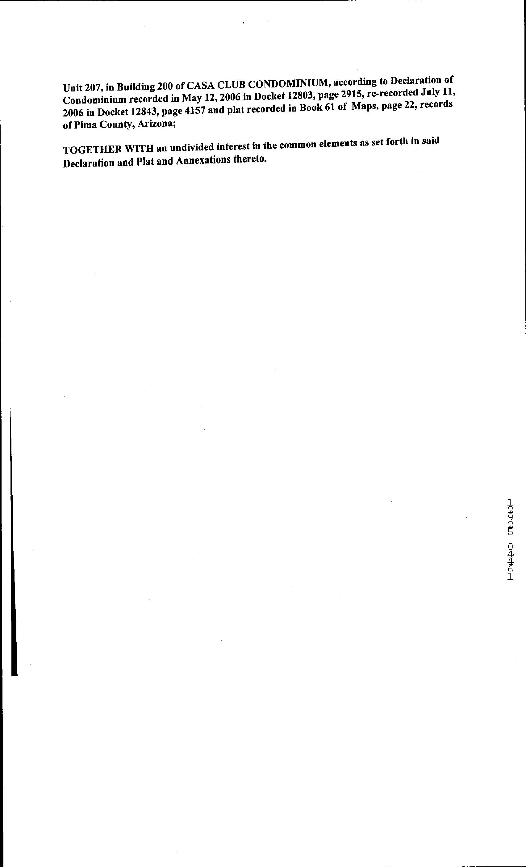 Owner Name: Campbell & Grant Condos Llc / APN / Alternate APN: 113-07-4660 / Deed Type: Special Warranty Deed Land Use: Condominium Subdivision / Tract: Casa Club Condo / Lot Size: 505 Year Built / Eff: 1984 / Rec. Date / Price: 11/06/2006 / $86,885 Living Area: 475 # of units: Document #: 12925-4443 Bedrooms: Pool: Total Tax Value: $56,562 Bath(F/H): / #1 1810 E Blacklidge Dr # 215 Tucson Az 85719