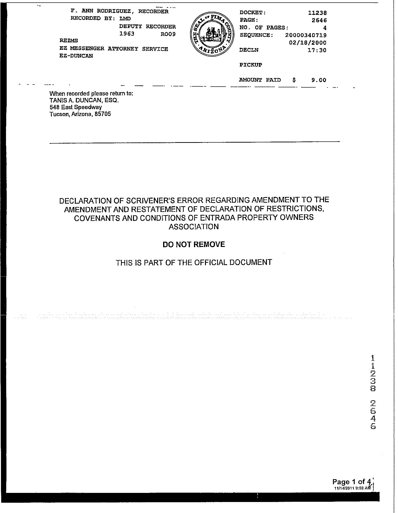 Owner Name : Zamora Juan F Subdivision : Entrada